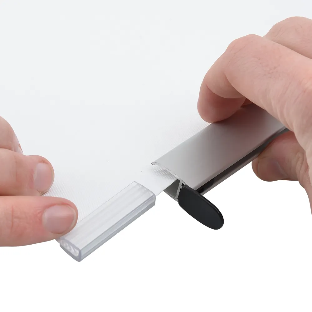 These banner rails are designed for use with the Sages Display System. They use a "clip and slide" system, by which banner changes are quick and easy taking just 60 seconds. Simply keep a few sets of rails fitted with different promotional banners at your premises and change your graphic in just seconds when required.