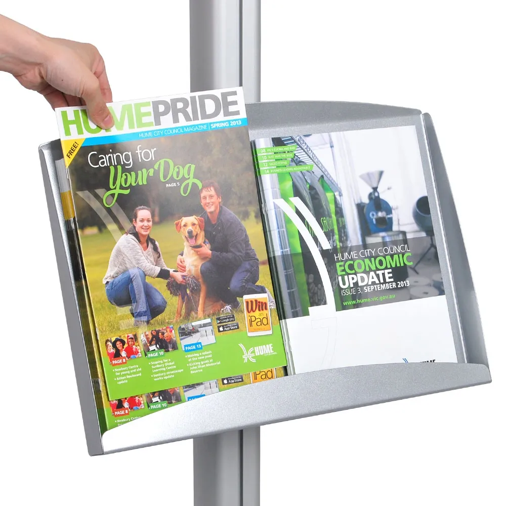 These information display stands feature these pockets on each side to provide easy access to customers. Different brochures can also be used to maximise the effectiveness of the unit. The information display stands have an anodised aluminium finish that easily blends in with most settings. Retail stores, schools, exhibition centres, and more will find these fixtures to be effective marketing tools.