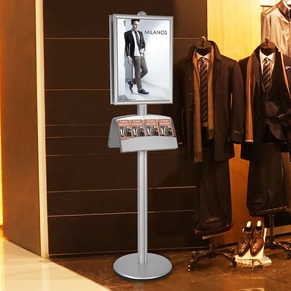 This modular advertising stand allows accessories to only be used when necessary. If a particular campaign doesn’t require brochures, or your business requires both poster frames on one side, this display is capable of fitting your needs. The advertising stand is made from anodised aluminium to be long lasting, even in heavily trafficked areas such as retail stores.