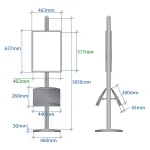 This advertising stand features (2) literature pockets that are mountable on either side of the display. These pockets are made from steel that has been powder coated to prevent chipping and resist scratches. The retail display, advertising stand has adjustable 440 mm x 260 mm pockets that move up and down the pole to best suit customer needs. The literature shelves angle up 25° to provide easier reading.