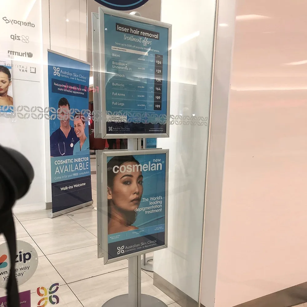 - Free standing poster display utilises snap frames to make changing out your posters quick & easy!