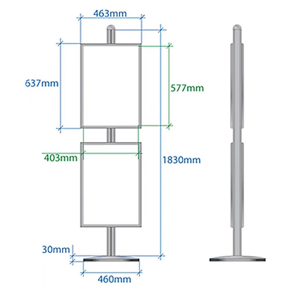 - Quality aluminium construction manufactured form aluminium for a robust display, even in high traffic areas