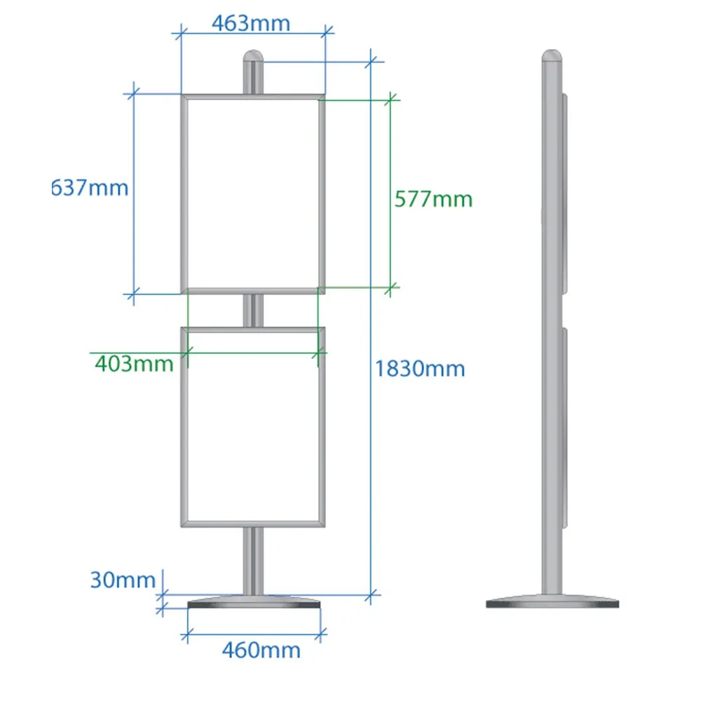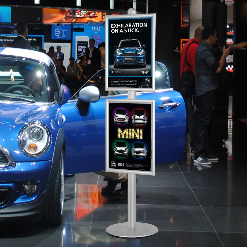 - Poster frames are adjustable up & down centre pole