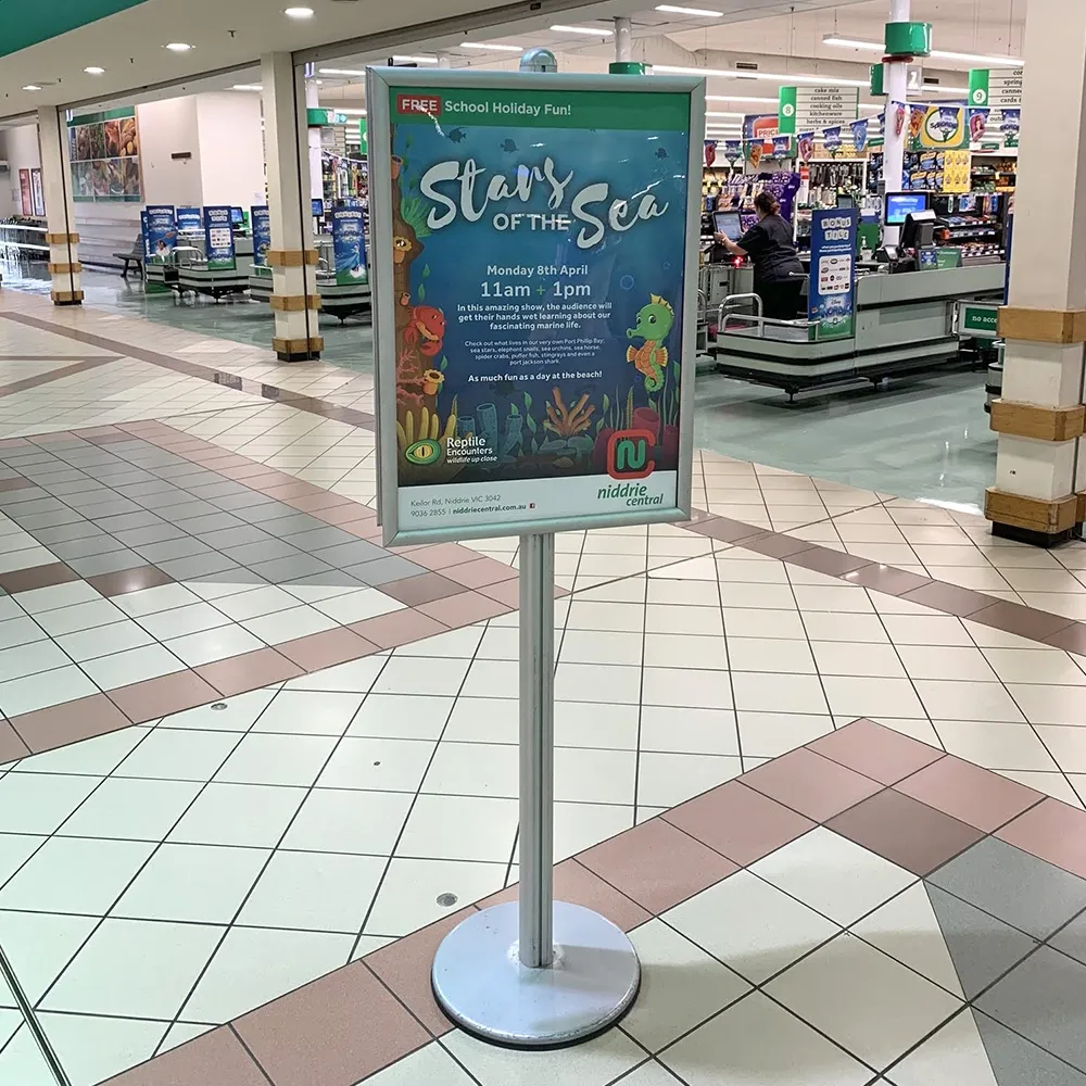 - Modular display allows you to easily move snapframes on centre pole into desired position