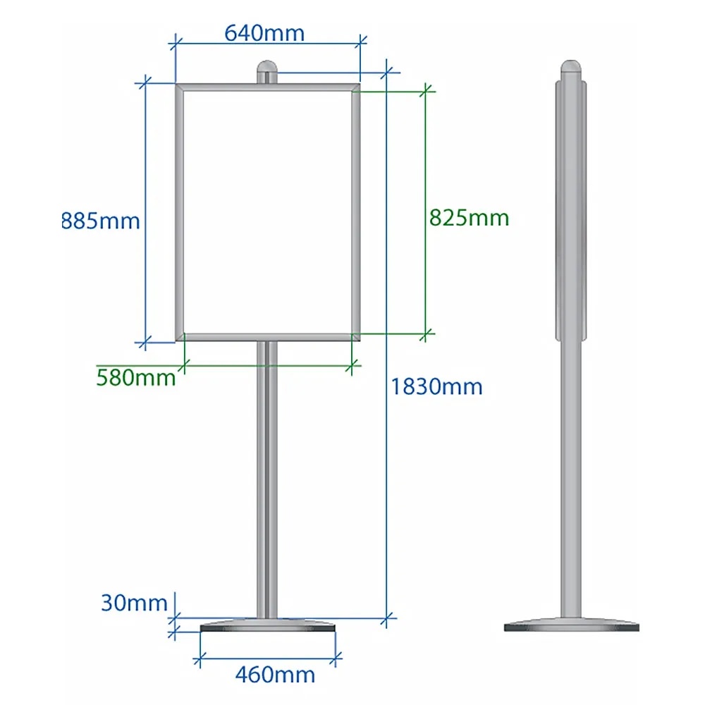 PVC lenses that are anti-glare are also included with your purchase, making viewing of posters easier in most lighting conditions. These lenses also keep your posters from gathering grime or dust whilst on display to maintain a professional look. These portable displays have a silver finish that fits in with any décor with ease!