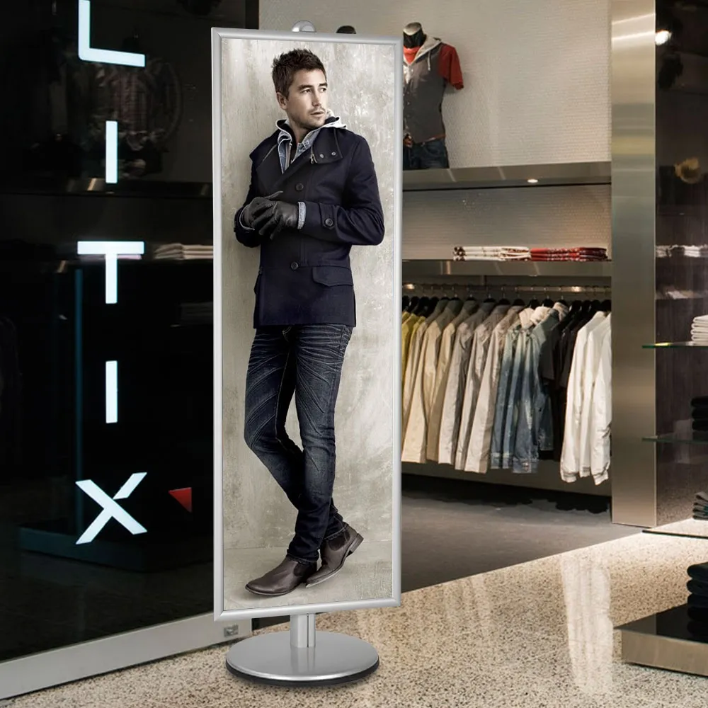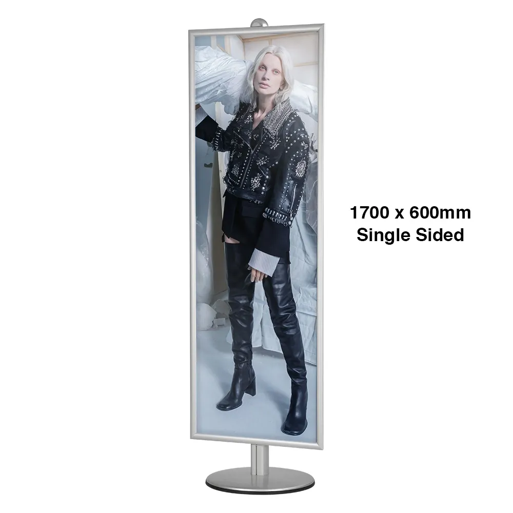 This display stand is among one of the most popular display stands as it holds a huge 1700 x 600mm snap frame. The aluminium construction allows for a light weight display which is easily modified with others ages System Accessories. This single sided display stand also comes with a protective plastic lens with a matte finish which helps eliminate reflection off your advertisement.