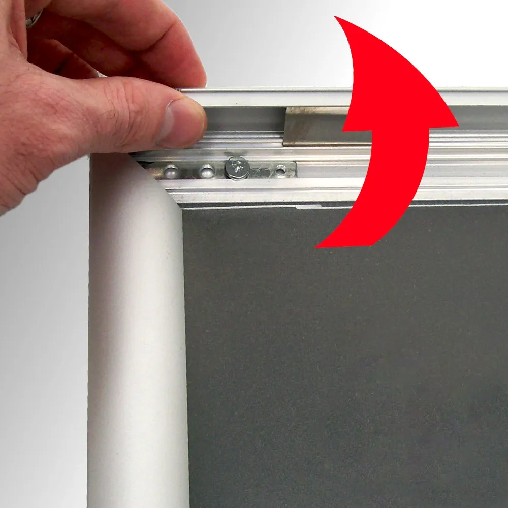 The display stand includes this easy to use snap frame which is ideal for busy environments where advertisements are constantly changing. By lifting the sides of the frame up and placing the advertisement into the frame will give you a secure and professional looking advertisement.