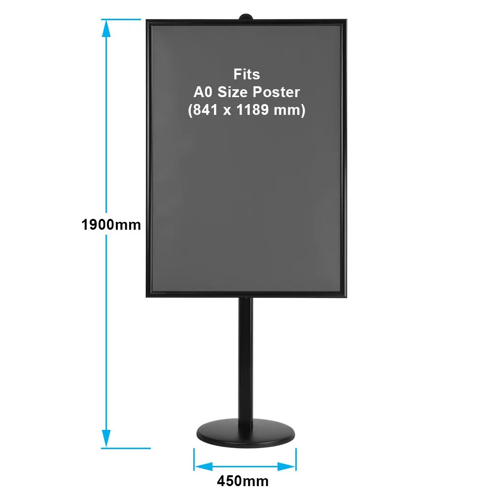 - Stand includes A0 (841 x 1189mm) clipframe with anti-glare PVC lens