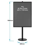 This display is made from heavy duty aluminium with a black powder coat finish, ensuring long-lasting use in any location. The base of the stand is weighted as well, helping to provide stability to the display during use in heavily trafficked areas. A rubber coating helps to prevent damage to floors as well as keeps the stand in place. Order this poster holder display by 3pm AEST to receive same day despatch to anywhere in Australia when in stock!