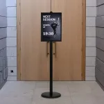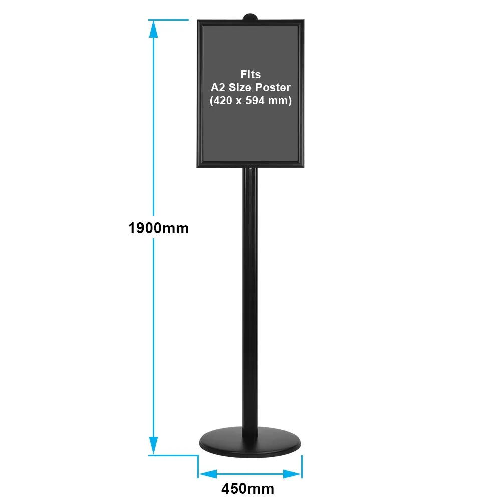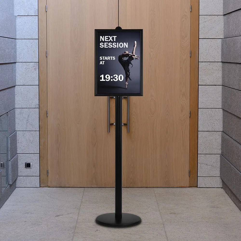 This freestanding signage utilises an A2(594 x 420mm) clip frame to display custom posters that can show important information regarding product lines, upcoming events, ongoing sales, specials, and more. The sign holder stands make switching out posters easy, with no tools needed to quickly change graphics. An anti-glare PVC lens is also included that prevent grime or dust from gathering on the poster during display and helps improve readability in different lighting conditions.