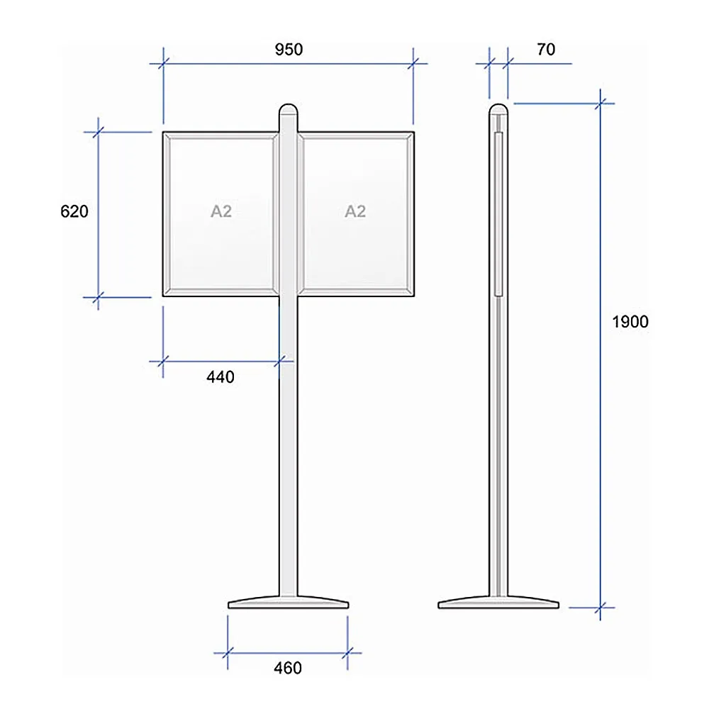 - Hold two A2 poster frames side by side - great for tradeshows, exhibitions & department stores