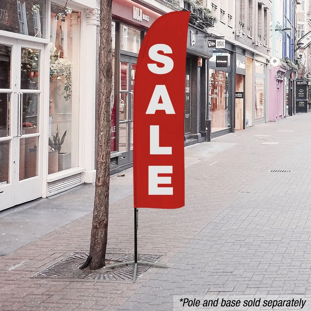 - 2.5m banner is single-sided flag with "SALE" screen printed in large lettering