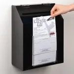 • 230 x 13 mm slot in hinged lid makes it easy to insert forms inside box