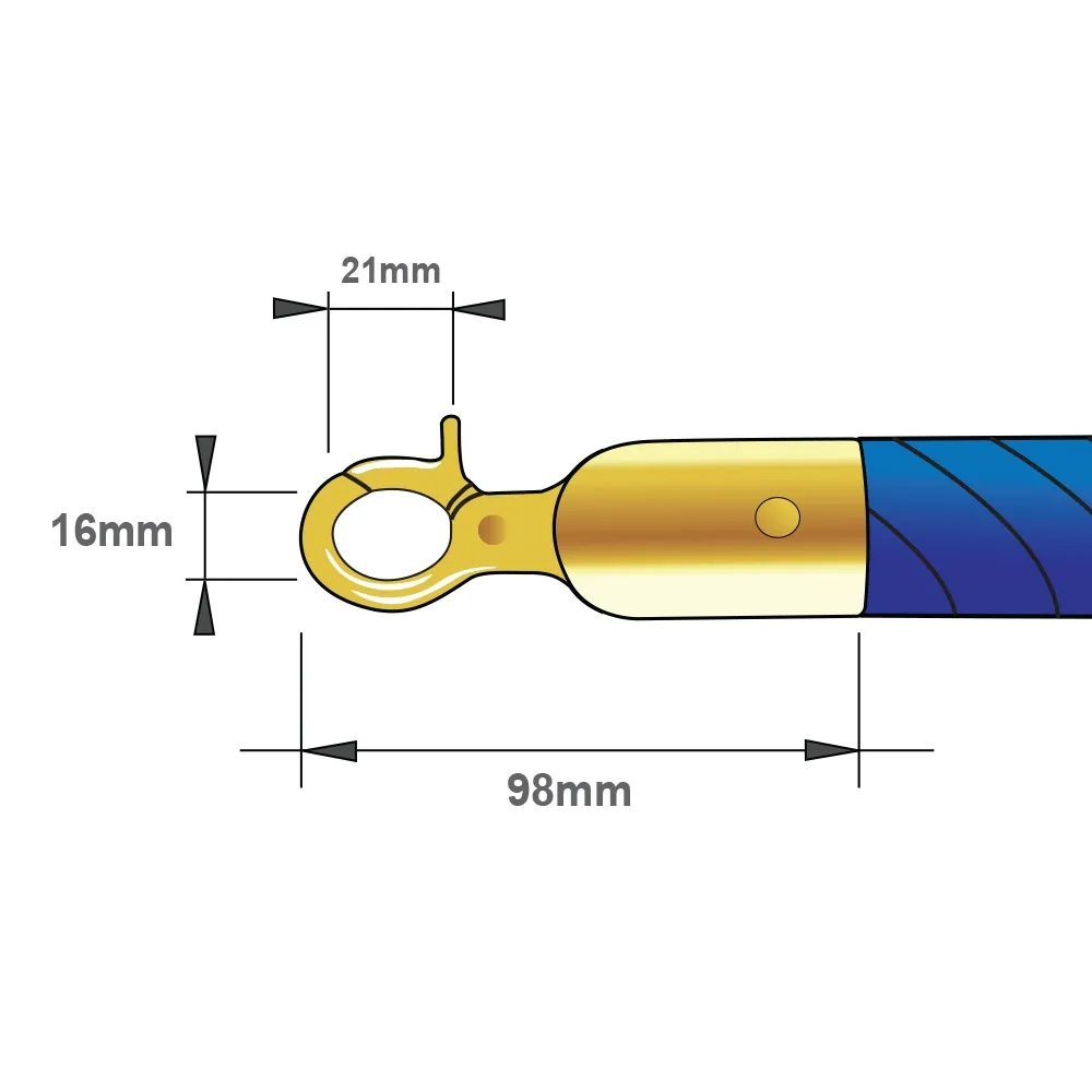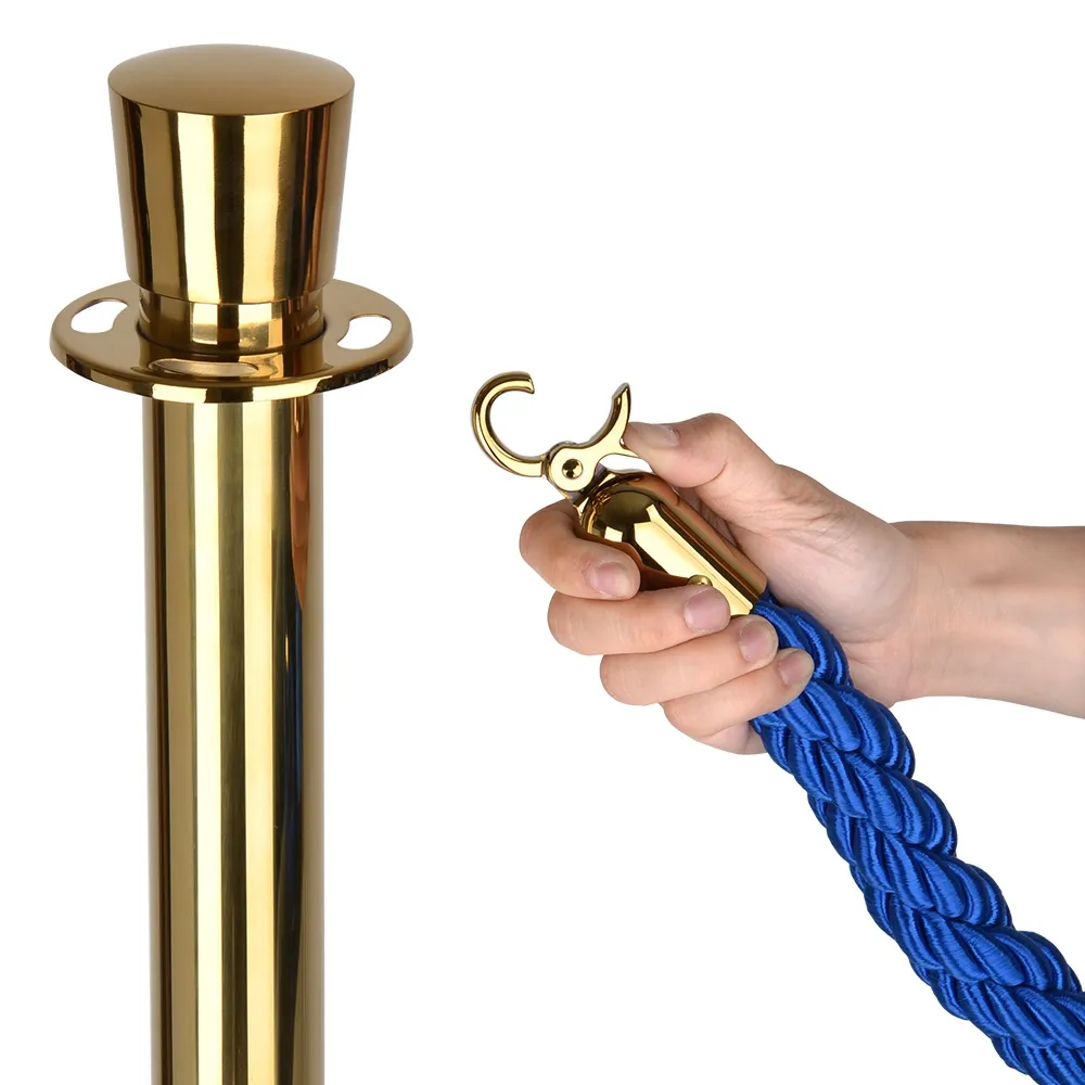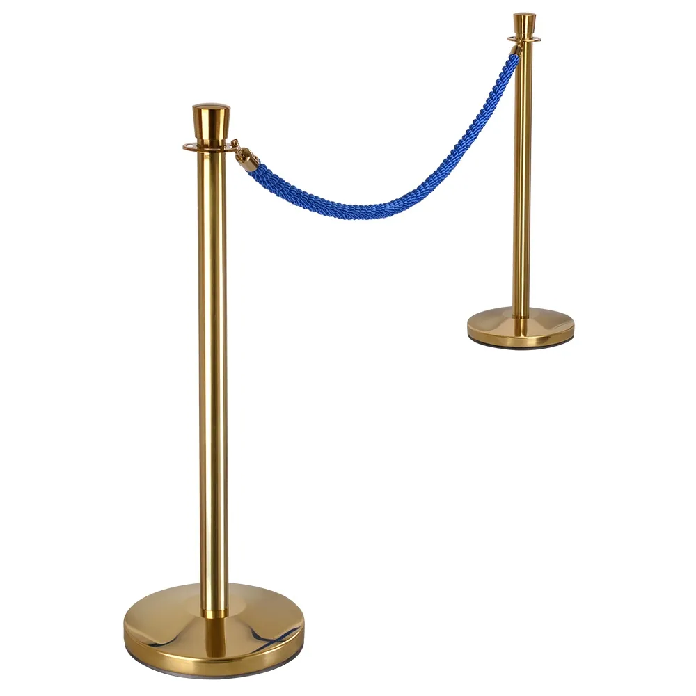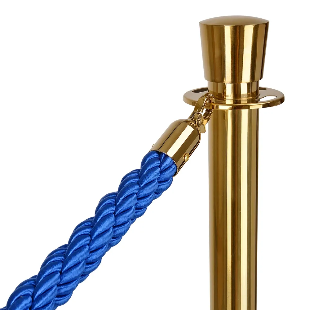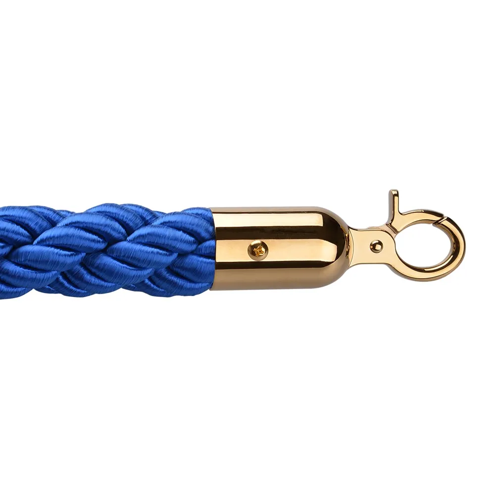 The decorative rope is blue with a braided design. This allows the rope poles to stand out and easily be seen by customers. The decorative rope, like a rope post, has gold ends with hooks for attaching to stanchions. The rope poles are 2 metres long, and form an effective queue barrier.