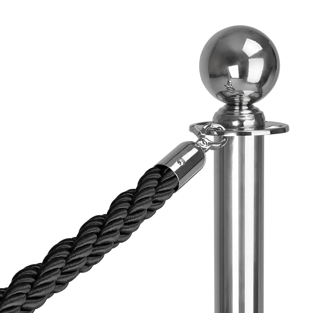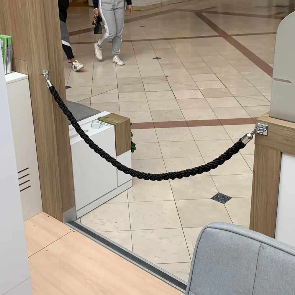 The rope stand has a braided rope design that sets it apart from standard ropes. The ropes are black and easily fit in with any location, with silver ends for attaching to stanchions. The rope stand, like post ropes, use hooks to attach to barrier posts. The ropes are used for queue control at nightclubs, bars, restaurants, exhibition centres, and similar locations.