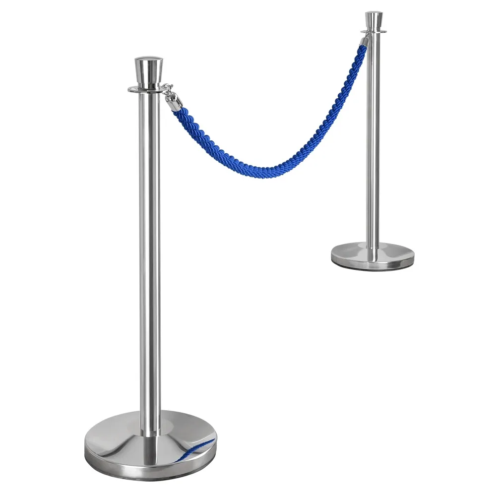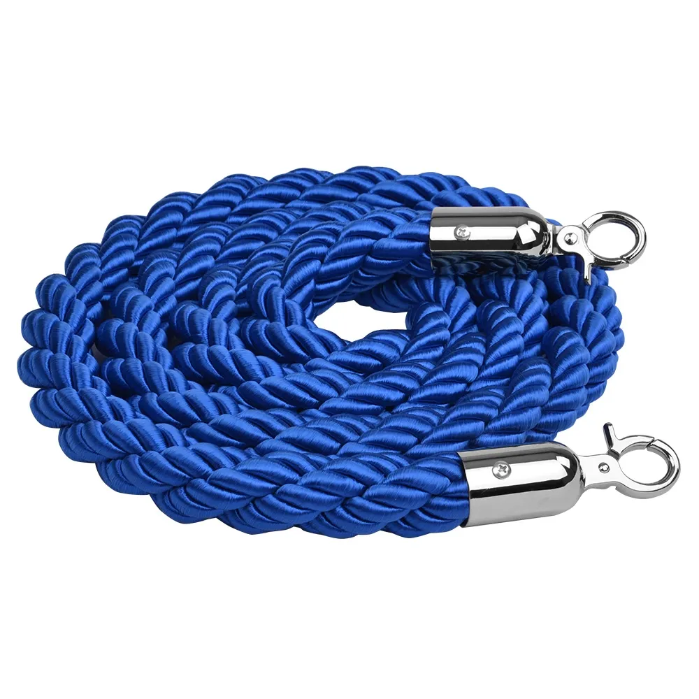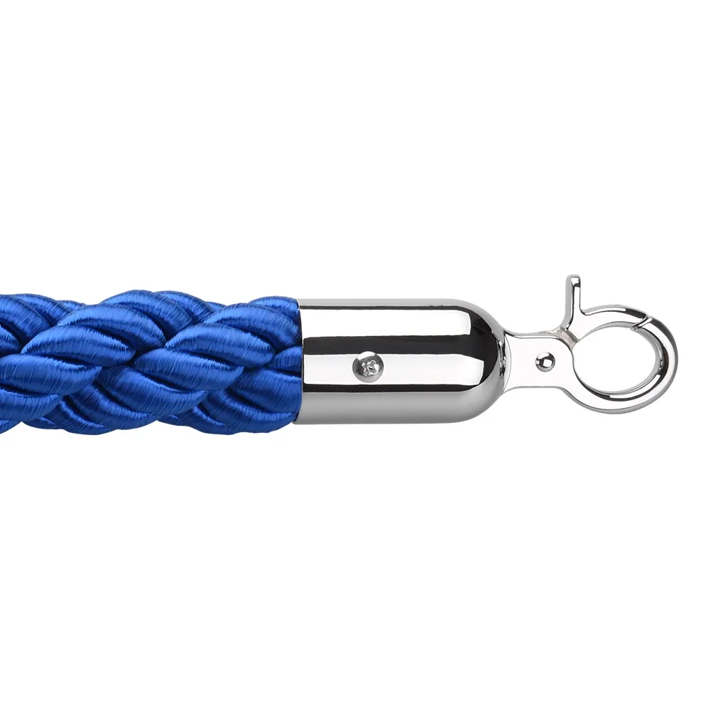These posts ropes have a unique braided design that is blue in colour. The rope stands have silver ends that attach to stanchions, such as the Q-Line series, with hooks. The posts ropes, like rope fencing, are 2 metres in length and used to block off areas or as access points.