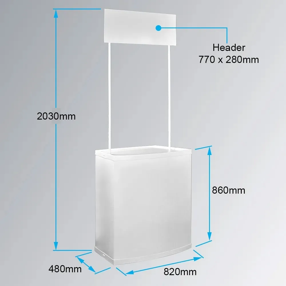 - Portable counter includes graphic header & front graphic to help get passersby attention