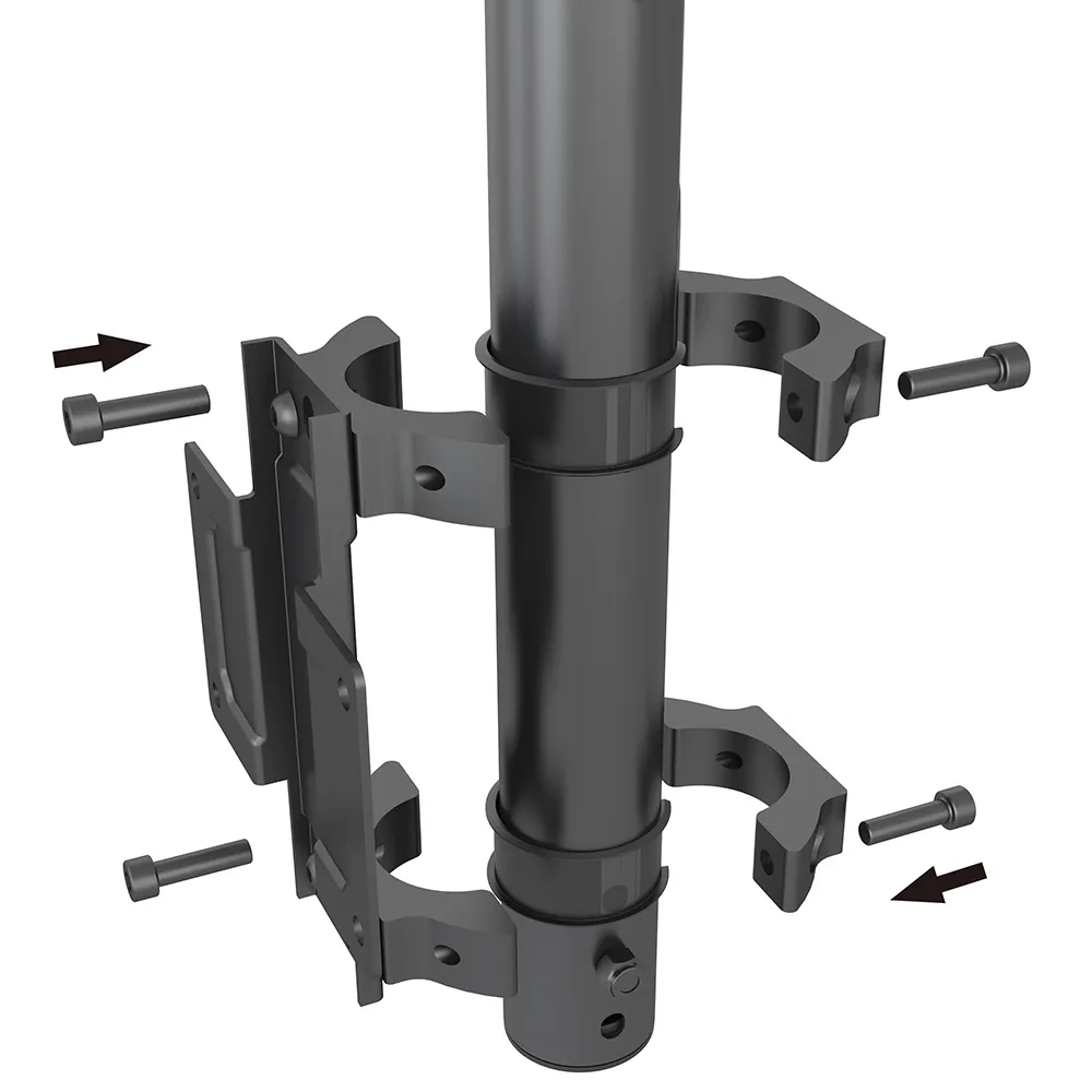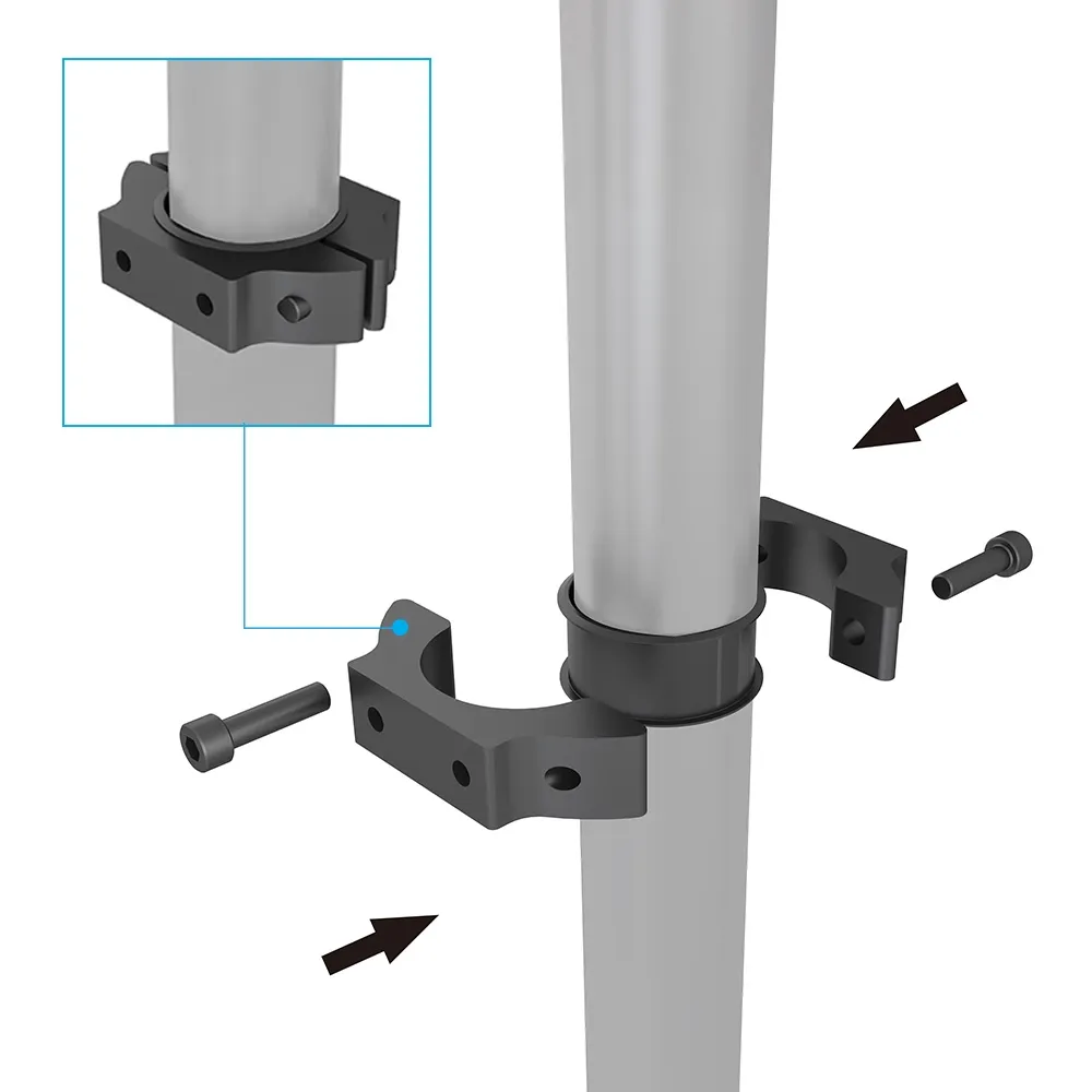 - Steel pole clamp compatible with 50mm pipes
