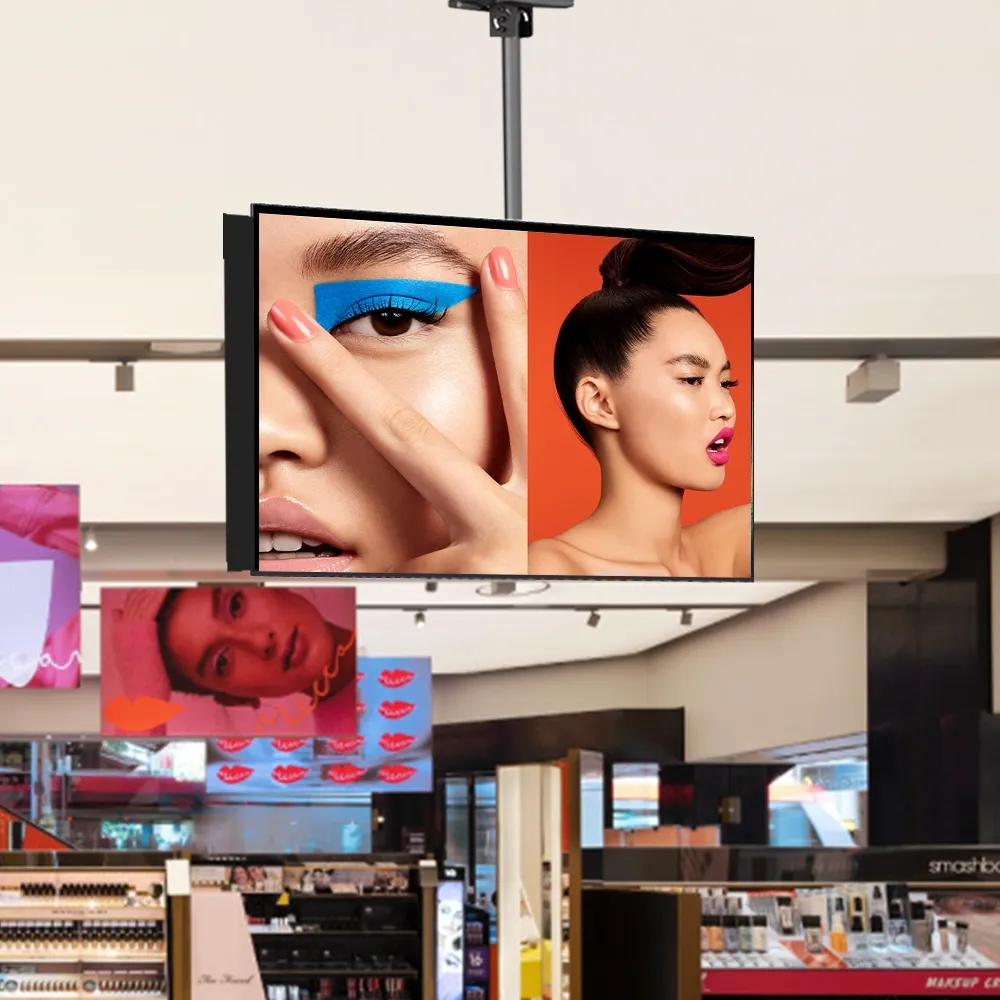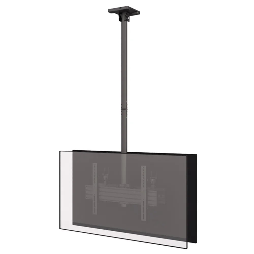 The TV brackets ceiling mount, a pole solution for flat panel installations, is particularly useful in locations where floor space is limited. Hanging screens from the ceiling enhances visibility and reduces floor clutter, removing tripping hazards and creating cleaner environments. The 1.5m pole height provides optimal elevation, with internal cable management that keeps the setup neat and professional. Perfect for use in hospitals, train stations, and retail stores, this display ensures that digital signage is visible and accessible from multiple directions.