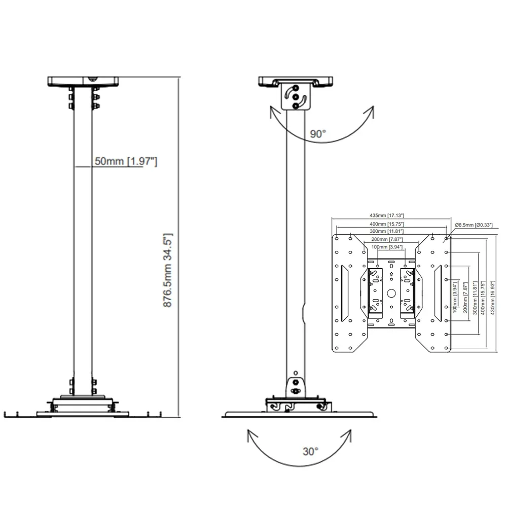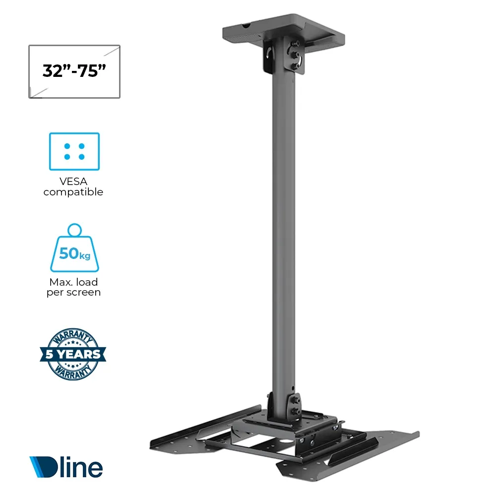 - Ceiling mount TV fits 32"–75” screens up to 50 kg