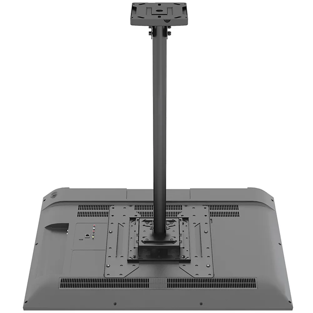 The ceiling mount TV, like a suspended drop down screen bracket, makes setup fast and safe with a quick hook-on design and keyhole slots that reduce installation time. This is especially helpful for multi-site rollouts or upgrades where speed matters. It supports VESA sizes up to 400x400mm, giving your team flexibility when selecting or upgrading screens. Cable management is built into the design to keep power and data cords hidden, preserving a clean and professional look in open spaces like public transport stations or commercial storefronts. For applications where floor or wall mounts are impractical, this hanging television bracket offers a practical and clean solution.