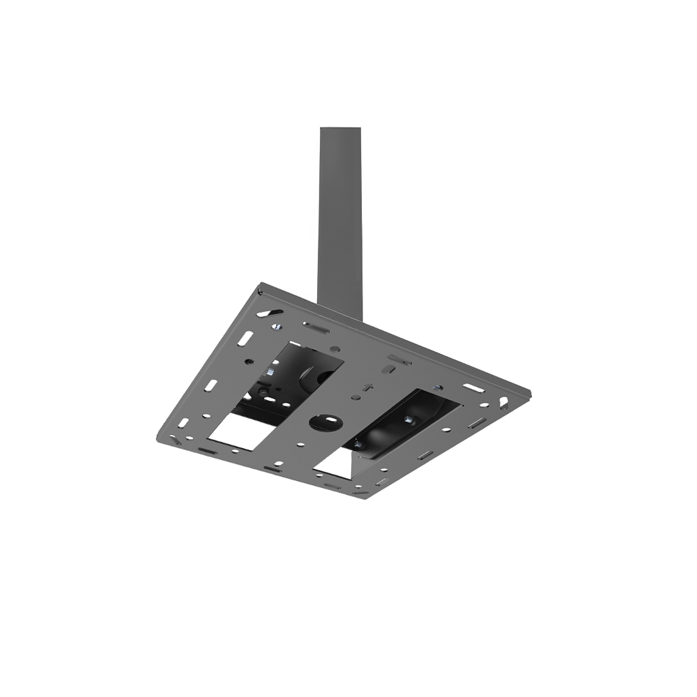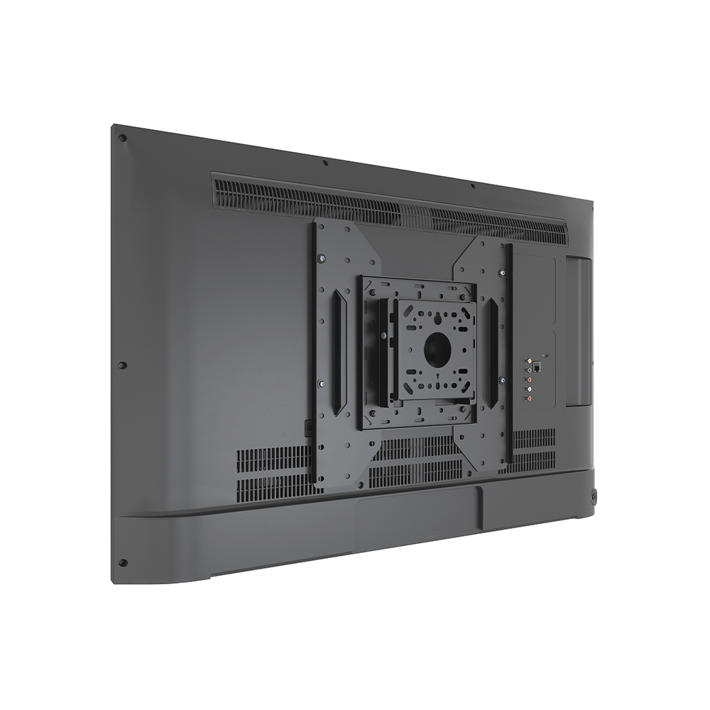 The pro face down single display mount is a professional mounting solution designed to securely hold a single screen facing downward from ceilings or slanted walls, making it ideal for high-traffic commercial settings such as retail spaces, airports and clinical environments where traditional mounts are not practical. Supporting screen sizes from 32" to 75" and weights up to 50kg, it works with both flat and angled surfaces and integrates seamlessly with the DLine Digital Solutions mounting system for custom configurations. The ability to tilt up to 10 degrees allows for flexibility in mounting screens. It is compatible with VESA patterns from 100x100mm up to 400x400mm and has keyhole slots with a hook-on design. There is also an integrated locking mechanism for public safety and internal cable management to ensure fast installation.