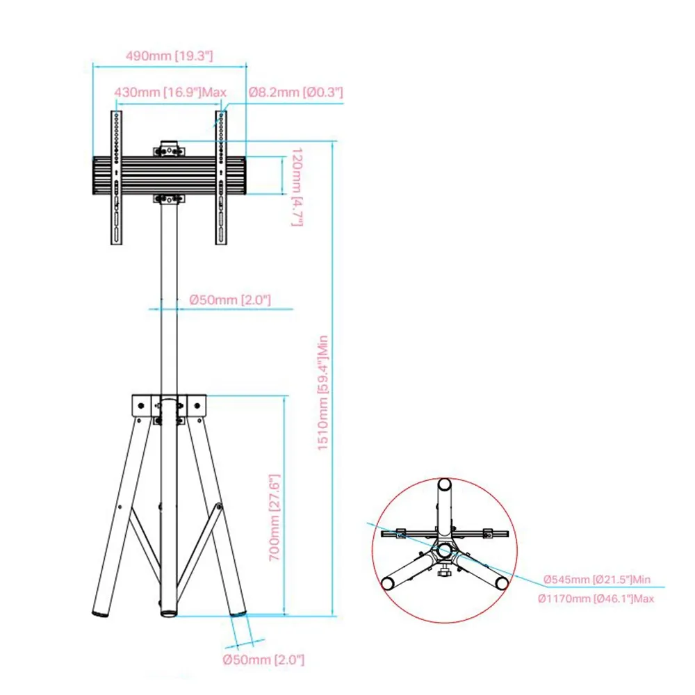 - Multi TV stand has tripod easel design for easy portability & quick set-up