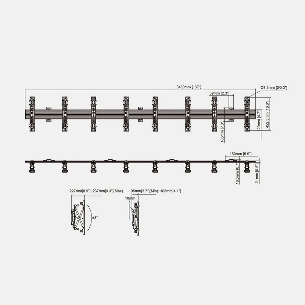 | Overall Size (Bracket) | 3480 x 490 x 95 mm |