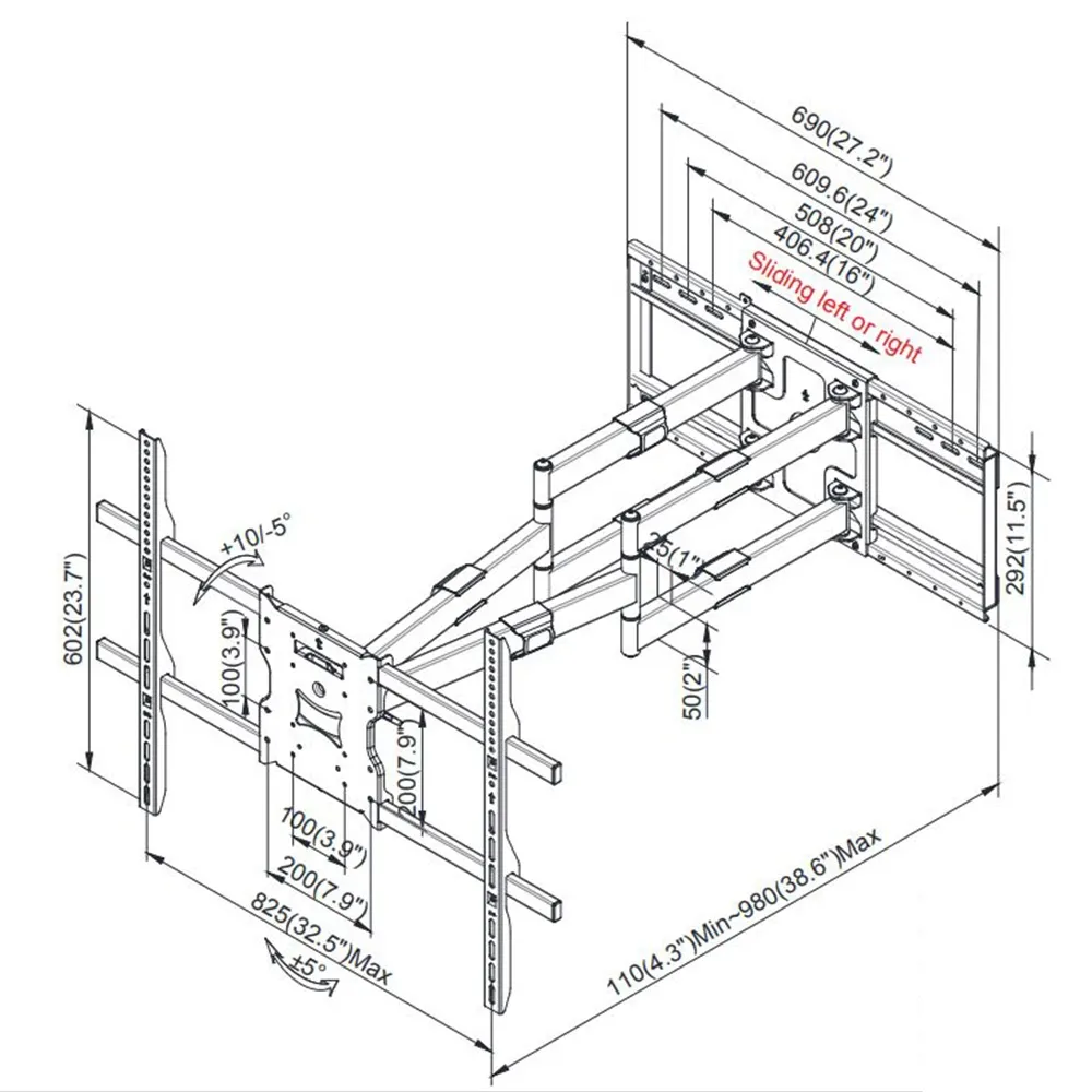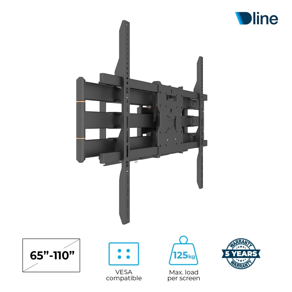 - Full motion TV wall mount holds 65"- 110" screens with max weight capacity of 125kg