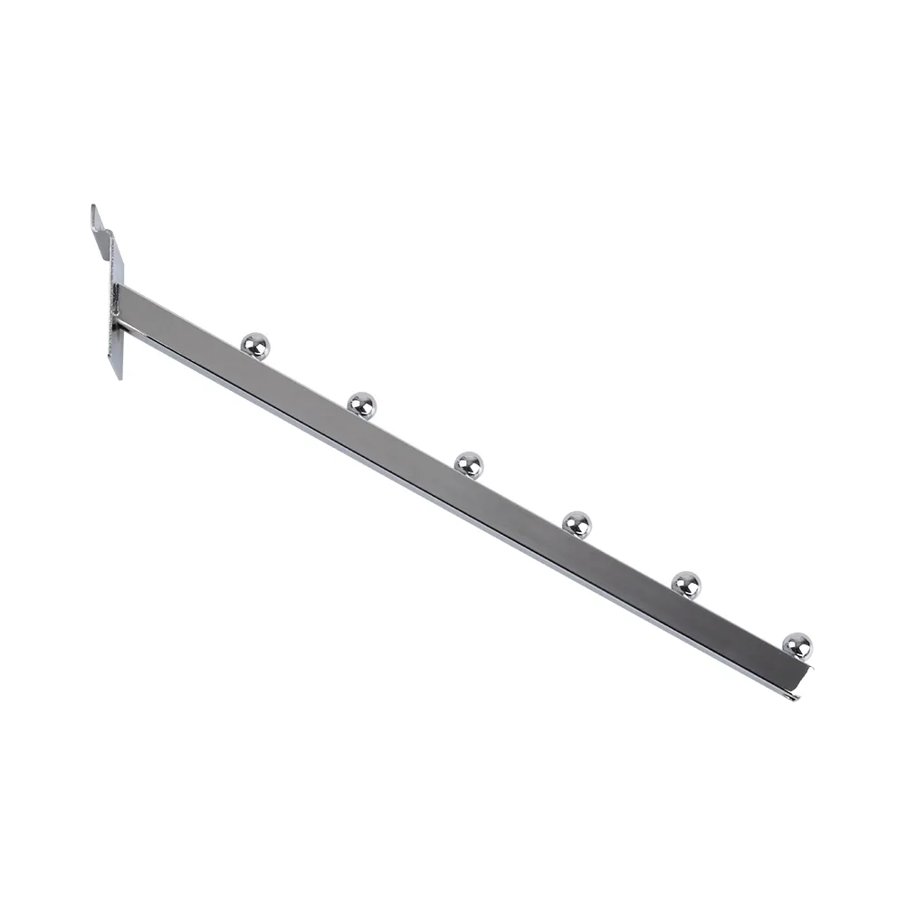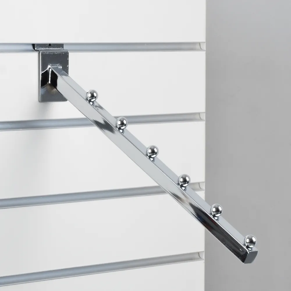The 6 ball waterfall hook is made from steel with a chrome finish to complement white, black, maple, and any other slatwall fixture. Slat wall fixtures make installing and customising your display easy, as the indented back of accessories is easily slid into the slat channel and supports ample weight despite the lightweight build of the fittings. This hook as well as the majority of other in stock products ships same day Australia-wide when in stock and purchased by 3pm EST, buy from Slimline Warehouse today!