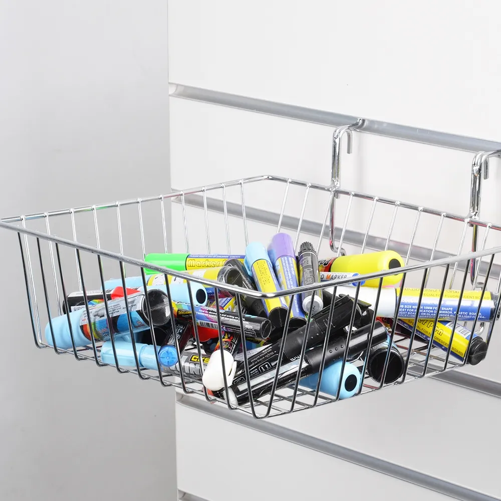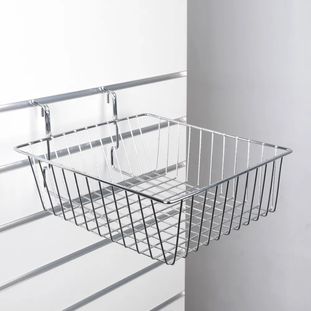• Slatwall wire basket is made from steel with a chrome finish