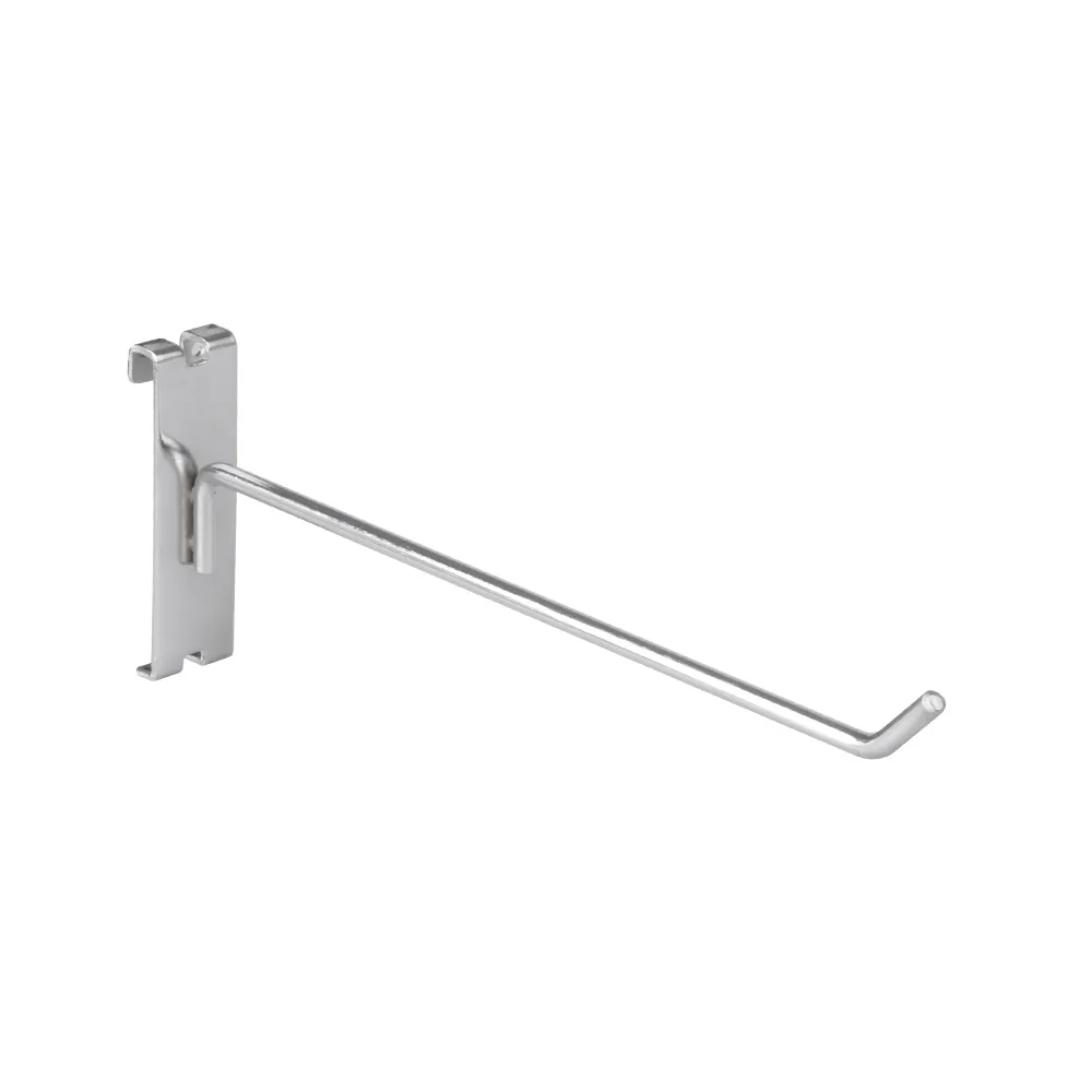These grid accessories, gridwall display hooks make placing product on grid panels easy! The 250mm long hook can hold heaps of products in blister packs, on hangers, or using tabs to ensure customers have plenty to choose from. The end of the peg is upturned 30°, helping to prevent items from easily slipping off whilst on display to keep a tidy store.