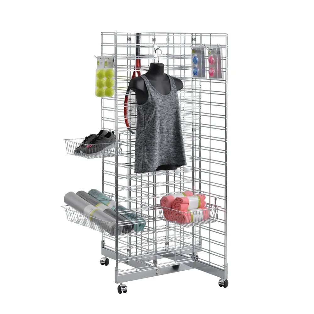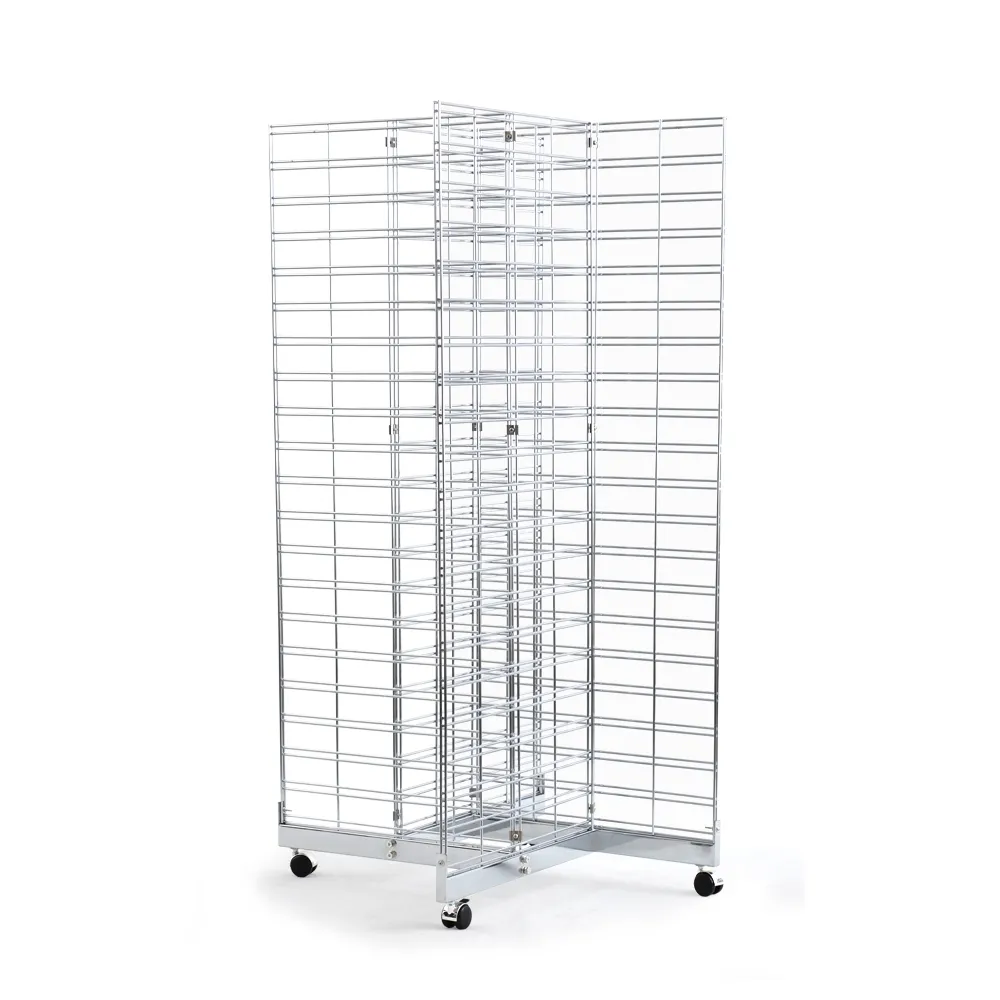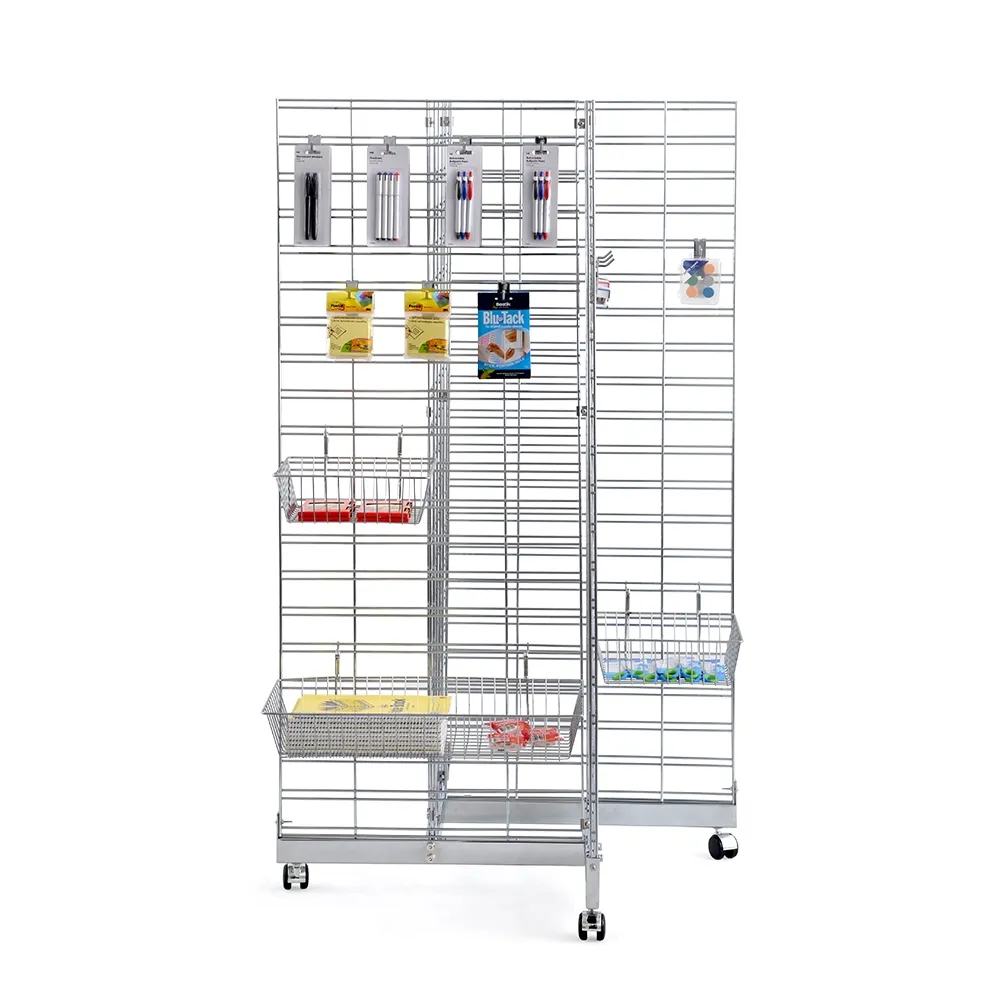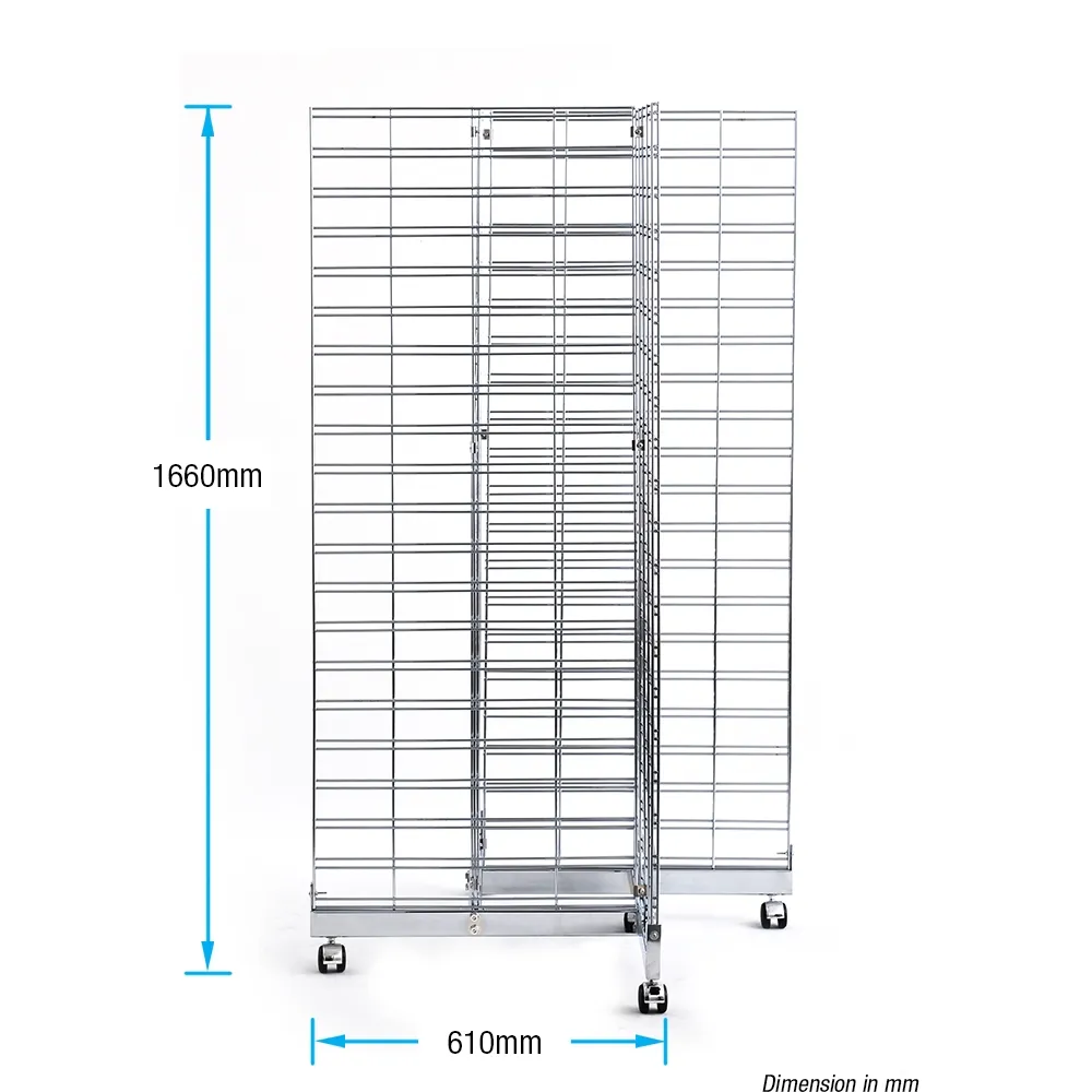 These mesh display stands are fully customisable, making it easy to create the proper fixture for use at your business! The gridwall display systems features (4) panels aligned in a pinwheel design, maximising space on your sales floor whilst displaying heaps of products in one space. Each grid panel is 1545 x 610mm, able to merchandise a variety of items for customers to browse using hooks, baskets, shelves and more!