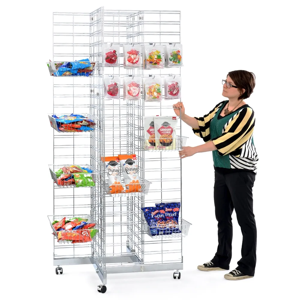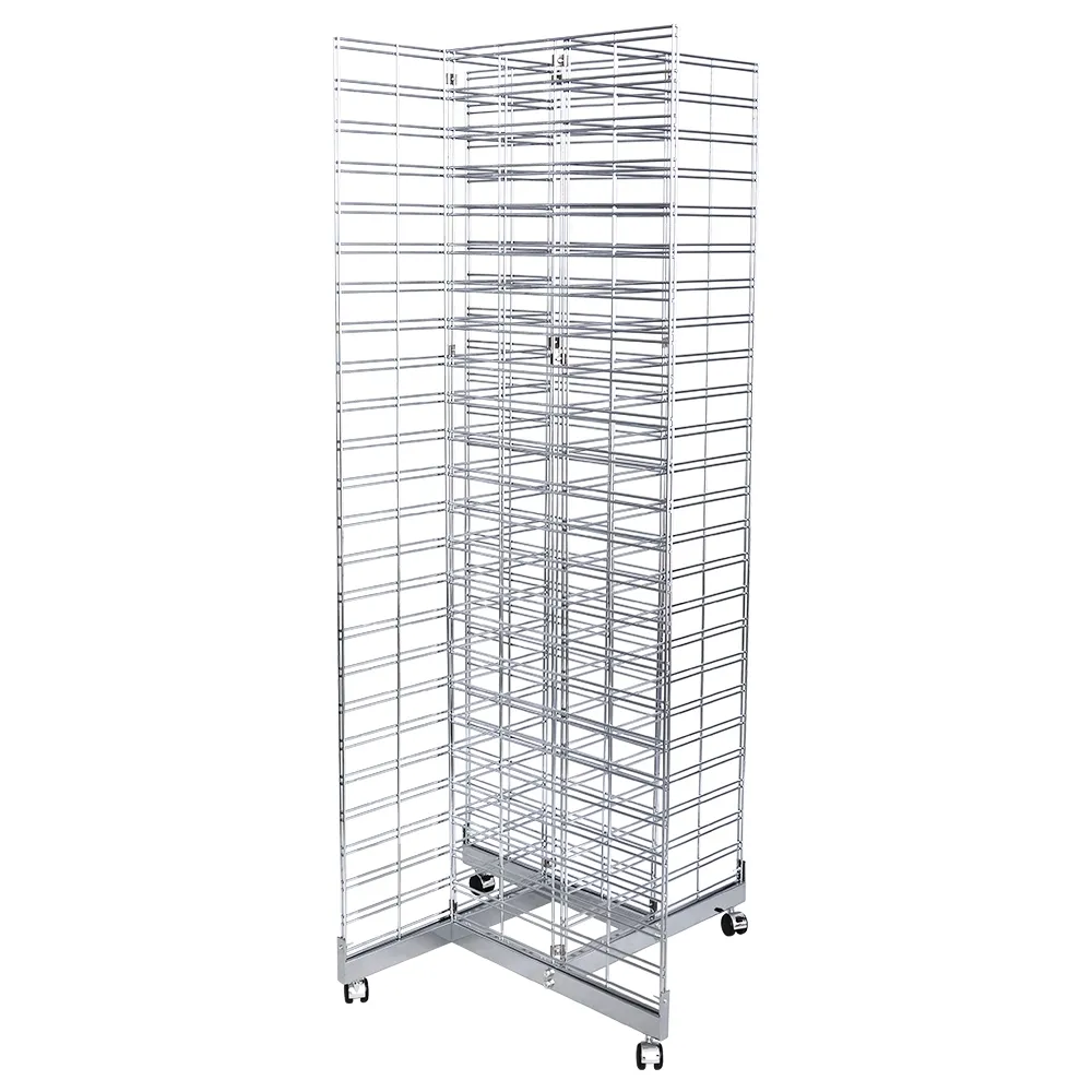 The freestanding gridwall display, like many store fixtures, features a wheeled base to make moving the 41kg gondola into place easy. Each of the (4) wheels has full 360° rotation for excellent maneuverability, and two of the wheels are locking to ensure the stand remains in position during use. This grid panel stand is great for combining with other store fixtures to outfit your retail store with heaps of easy to browse products on a professional stand available at an affordable price!