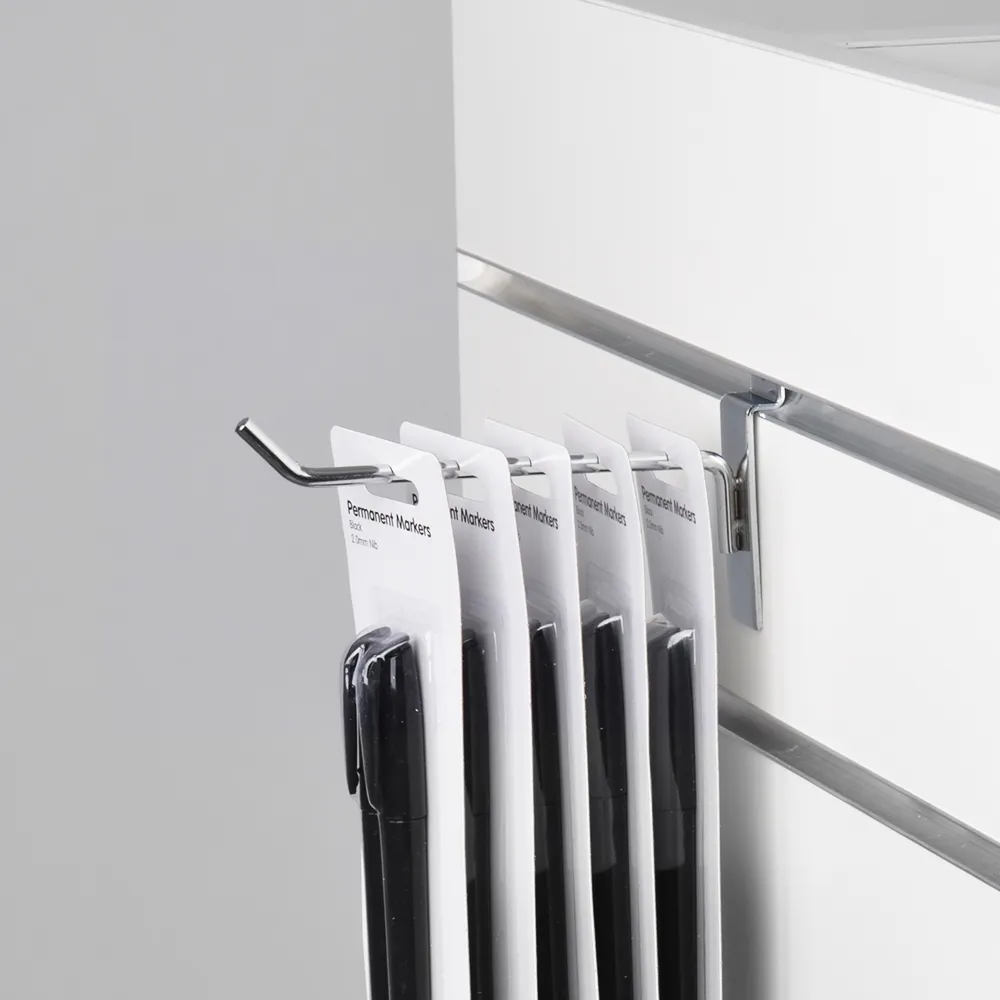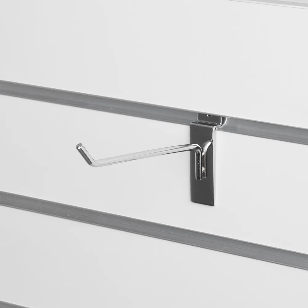 The slatwall panel hooks, part of our line of slat wall store fixtures, is designed to be placed in a slot board channel. The back of the peg has an indent to easily slide into these channels and then remain tightly in place when in desired position. This fitting has a chrome finish to complement any colour of slat panel, with the aluminium make ensuring affordability and durability for years to come. Orders made by 3pm EST to Slimline Warehouse will despatch same day with most products when in stock to anywhere in Australia, buy online today!