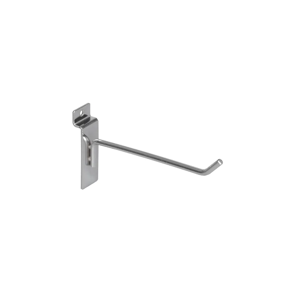 - Slatwall panel hooks feature upturned end to prevent items from slipping off