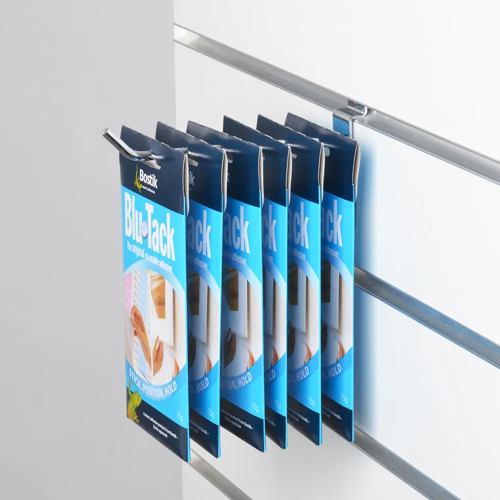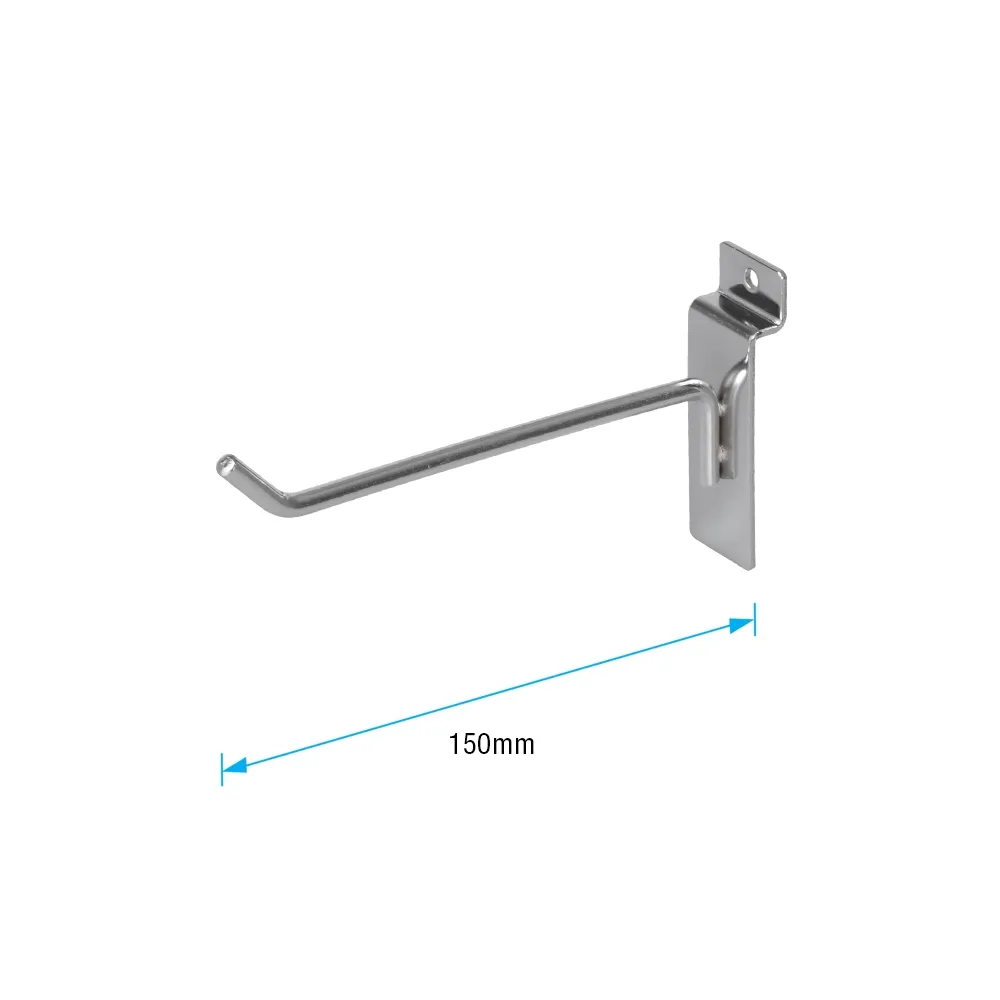 Use these slatwall panel hooks to display a wide variety of products on slot board faceouts at your location! The 150mm long hook is great for merchandising many different items, including products in blister packs and even clothing or garments on hangers. In order to keep items in place during display, the end of the hook is slightly upturned to prevent products from sliding off without inhibiting customers from removing them for purchase.