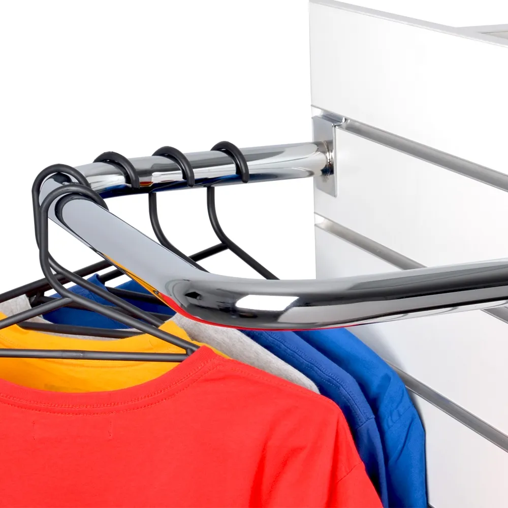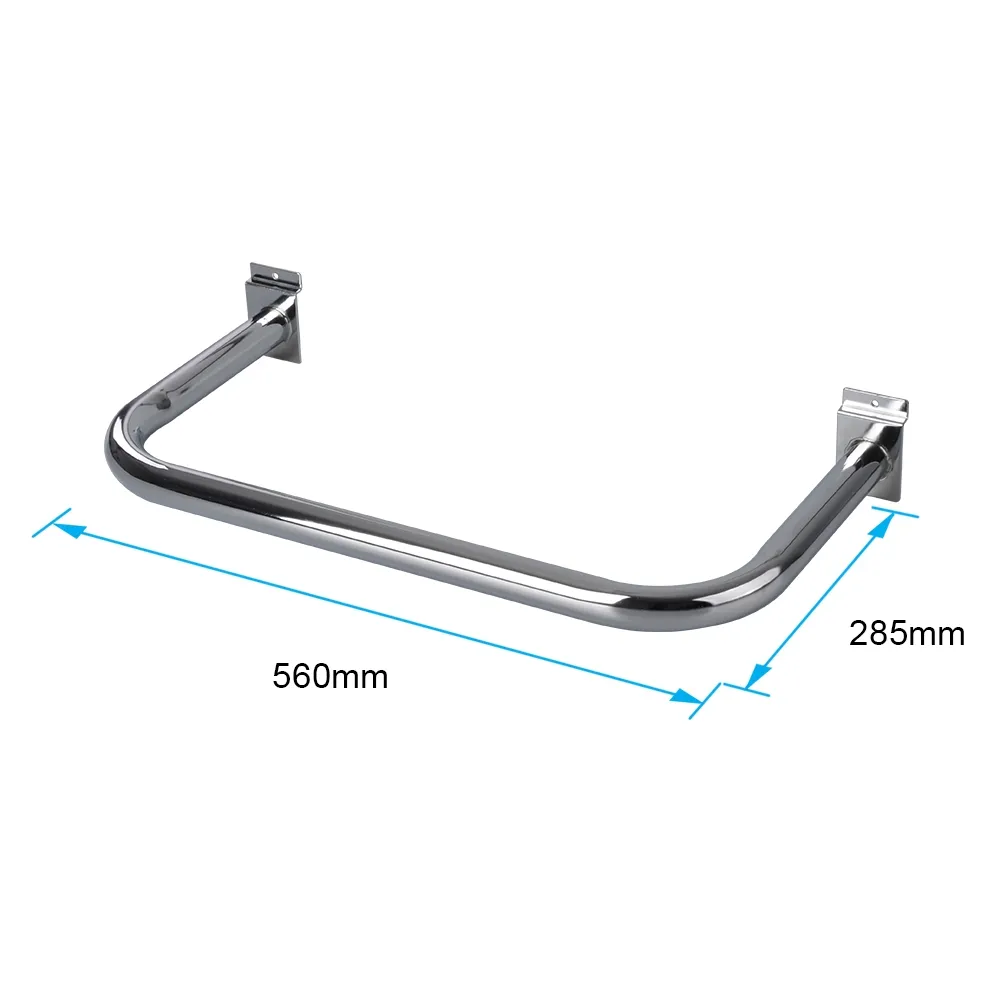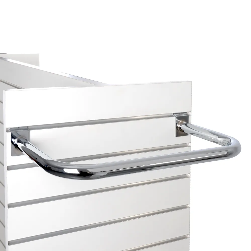 A slatwall hangrail is a "U" shaped hook to make holding clothing hangers and other items on your fixture easy. The slat panels accessories have a wide 560mm front that protrude out from the fixture 285mm, whilst still offering usable space on the sides to maximise space. The hanger can hold up to 10kg total, making it perfect for retail stores, shopping centres, kiosks, and more to provide easy to browse merchandise to customers.