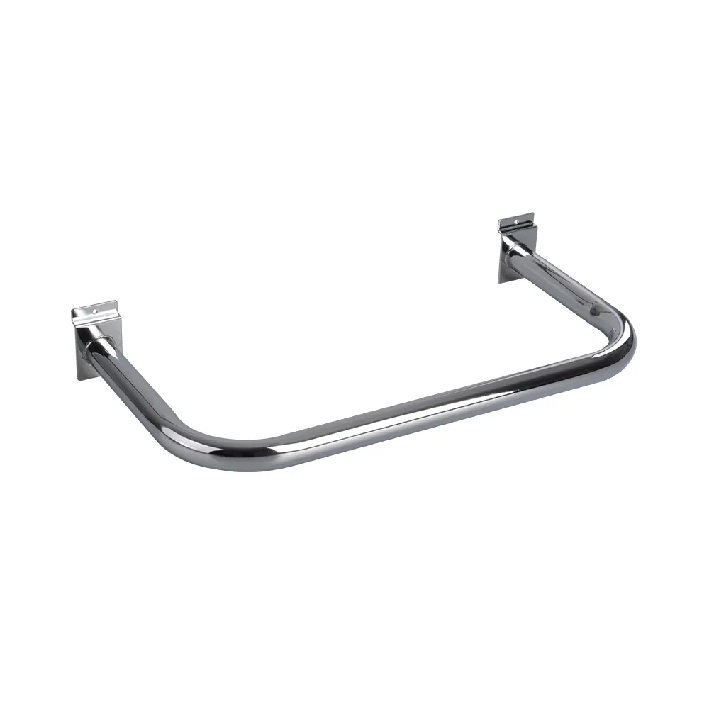 The slatwall hangrail, used with store slot board fixtures, uses a 32mm tube for a heavy duty display ready for daily use. Made of steel, this U rail bracket display is lightweight whilst resilient for long-lasting use at a great price. The chrome finish fits in well with different finishes of slat wall as well as any décor style thanks to its neutral look. Order today by 3pm EST to receive same day Australia-wide shipping with this and most other products, only from Slimline Warehouse!