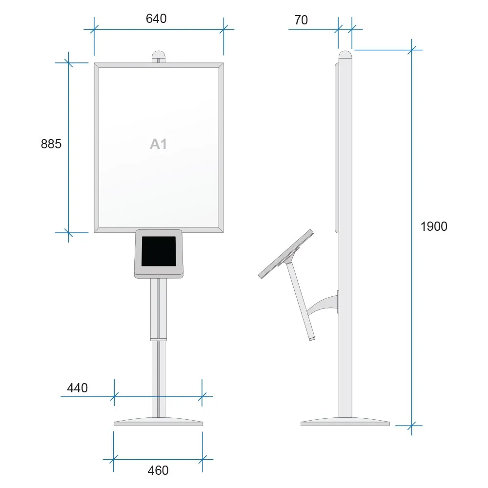 These iPad kiosks, modular iPad stands are made from aluminium to provide a durable display that is perfect for use in heavily-trafficked areas for years to come! The silver finish easily matches any decor, and the tablet holder features a black metal face that helps to highlight iPads. The home button is covered, keeping employees and customers limited in how they may interact with the tablet.