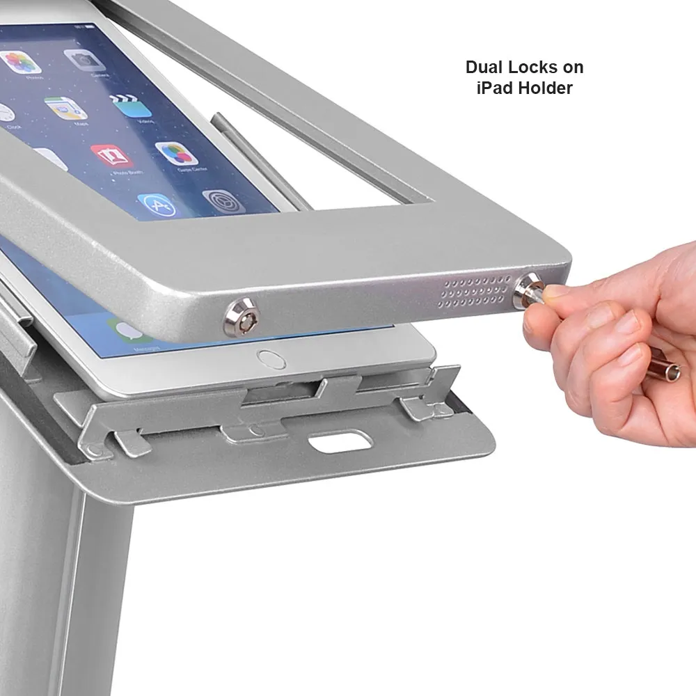 • iPad stand with brochure pocket is lockable to deter theft in public areas