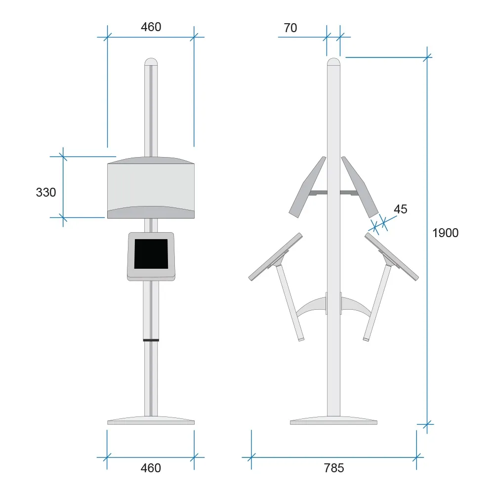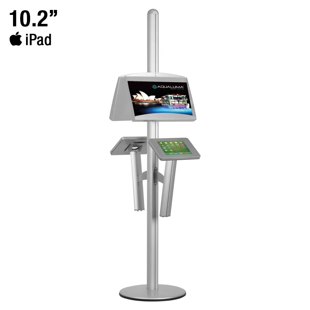 This exhibition kiosk, iPad stand with brochure pocket has a modular design that allows each component to be placed anywhere along the centre pole, with a range of accessories available for full customisation. This display has (2) brochure pockets that can hold two A4 (210 x 297mm) brochures side by side or a single A3 (297 x 420mm) sized pamphlet for customers to take home with them. The powered tablet holders are designed to display Apple® iPad 7th (2019), 8th (2020), & 9th (2021) generations in either portrair or landscape format. Cables are placed through the display for a neater look that ensures the iPads are powered whilst in use without worry. Slimline Warehouse provides same day shipping to anywhere in Australia with this and most other in stock products when purchased by 3pm AEST, buy online today!
