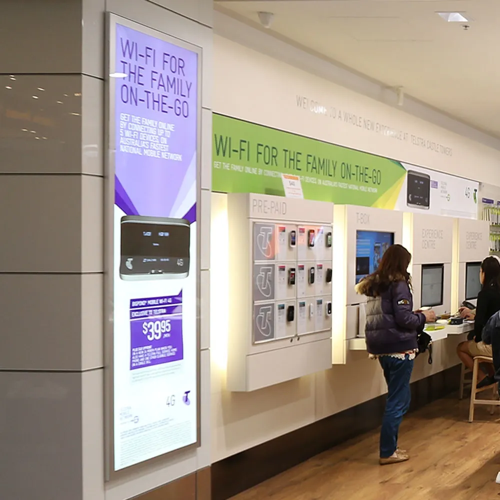 - Back lit light box displays 1731 x 831mm custom graphics in both landscape & portrait format