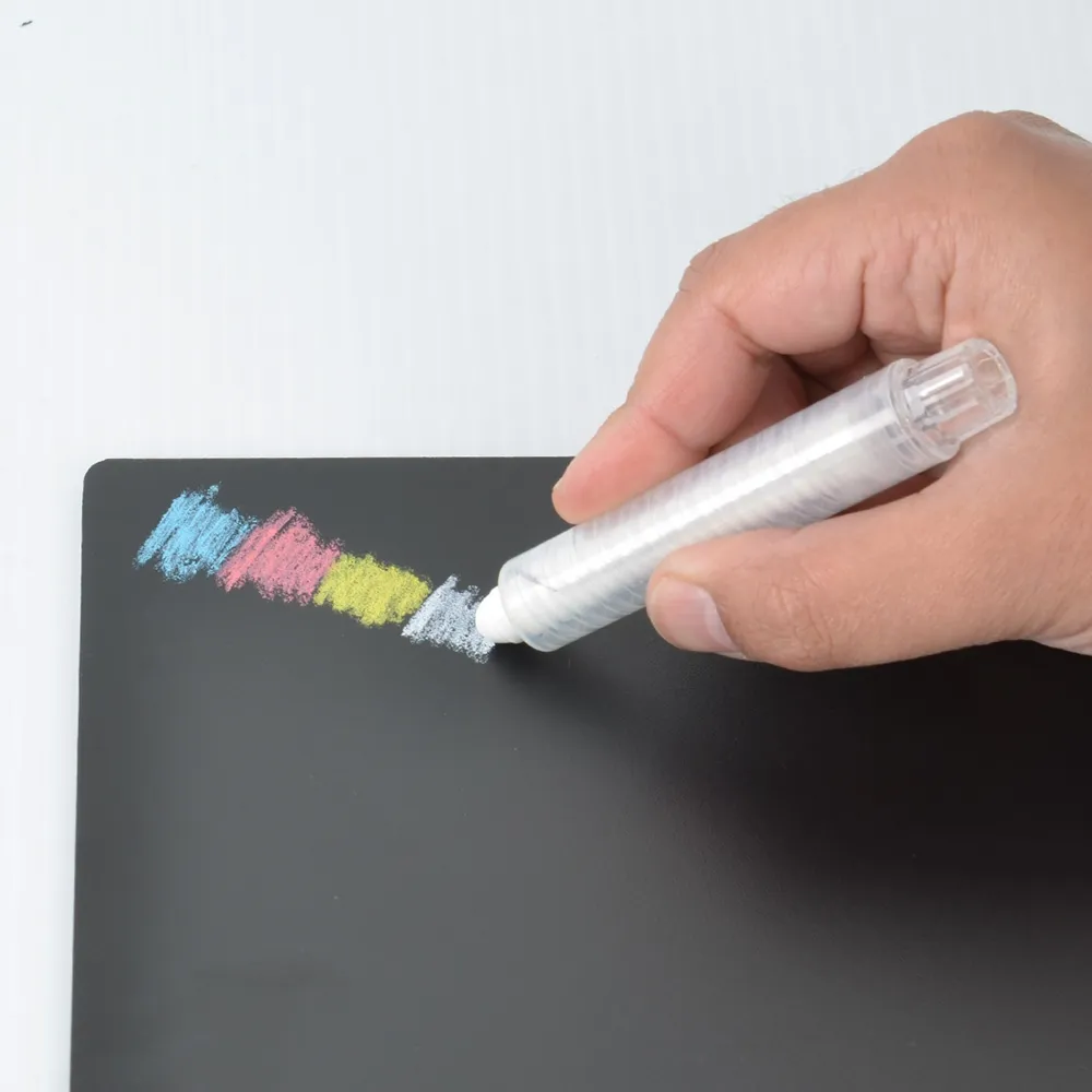 Solid markers are used in retail stores, restaurants, cafes, classrooms, and more to easily write on a number of surface types to help draw attention and inform! The coloured pens included in this kit are in 5 colours: white, green blue, red, and yellow. There are ten total pens included with this set, with two of each aforementioned colour provided. The ink is dustless and non-toxic to be safe for use by nearly anyone in all environments. It is easy to erase from surfaces as well, with only a damp cloth needed to fully remove writing from most non-porous surface types.