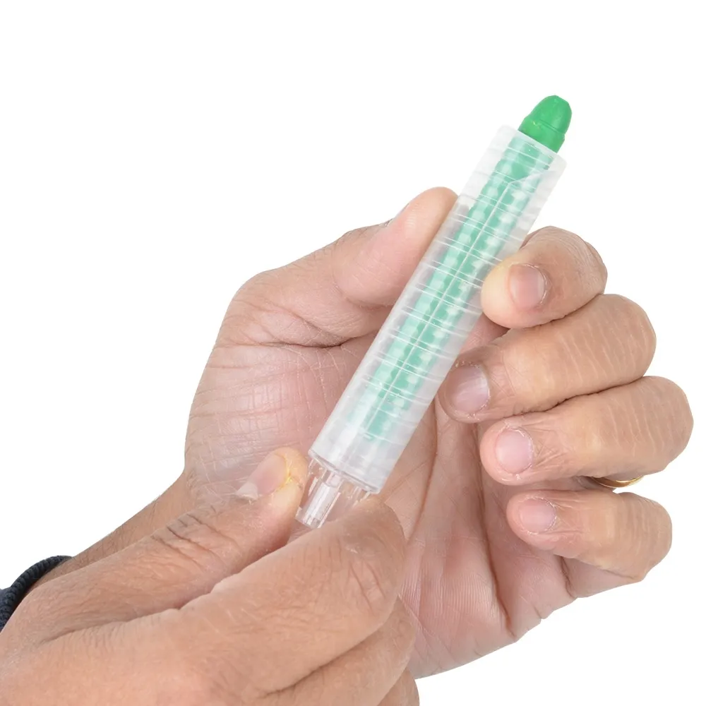 - Convenient plastic hold keeps hands clean, with twist design to extend pen outwards
