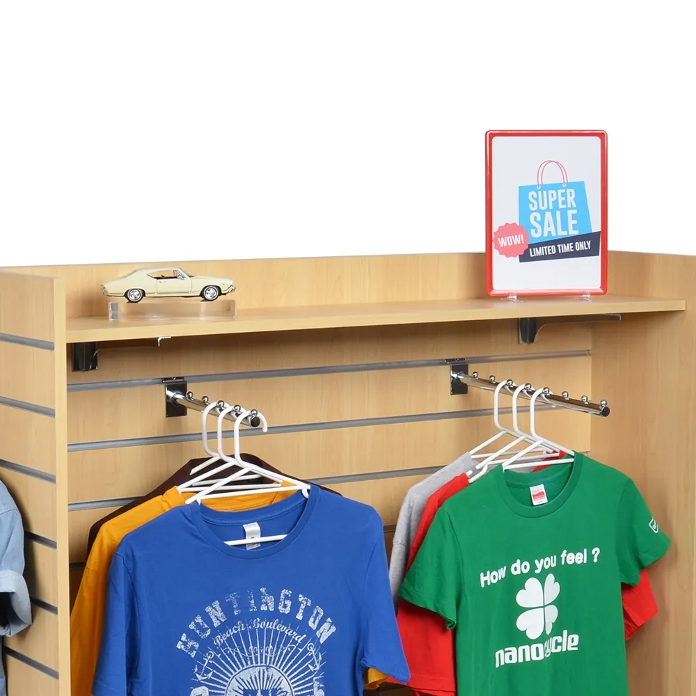 The slatwall shelf, meant for use with this line of slat wall displays, is made from MDF with a maple finish, a classic look that is great for retail. This low-cost fitting is great for any budget, with the durable 18mm thick shelving holding up well to regular use in different environments. Shelving brackets are available to safely mount the shelves at your location. Orders placed by 3pm EST will despatch same day to anywhere in Australia when in stock, buy online from Slimline Warehouse today!