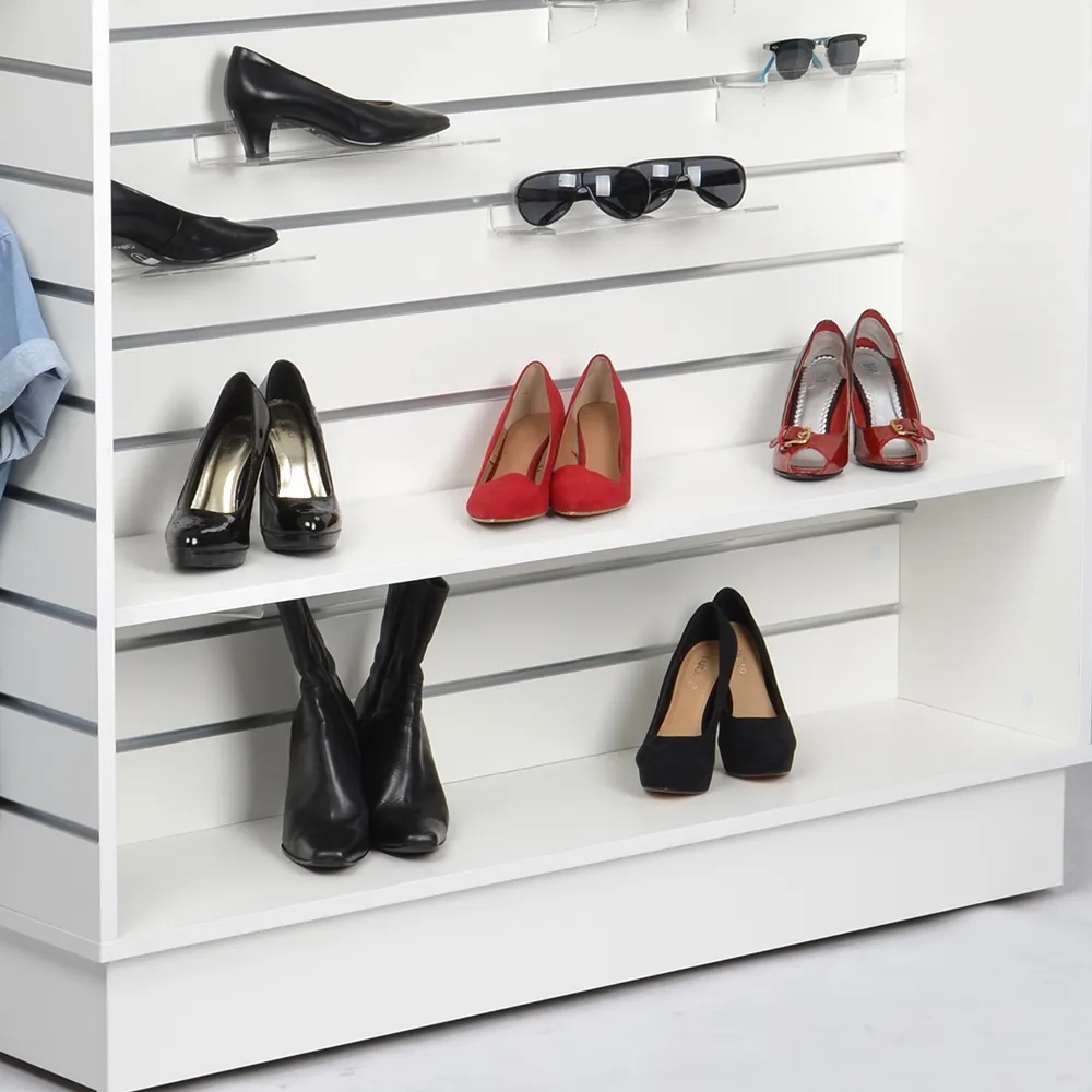 - Slat wall shelves help you merchandise items on your fixture, up to 40kg in total weight!