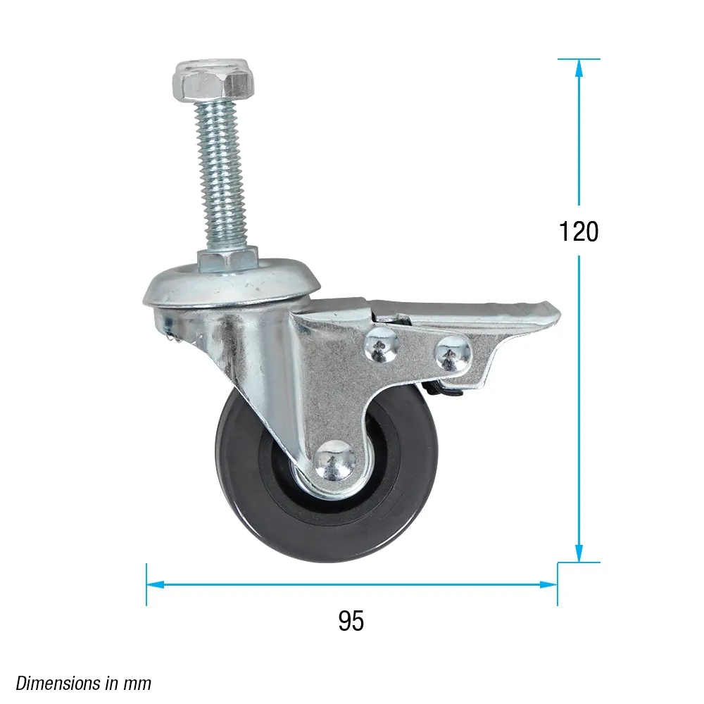 These barricade wheels are designed to work with SLNEB3MA9 safety barriers, making it easy to maneuver the folding gate into desired position. Each wheel is made of hard-wearing plastic that holds up to regular use in any environment. The casters all have step-on metal locks as well to secure the barrier in place once in proper position. Installing the wheels is easy using simple tools to secure them, with the bolt going through the pre-drilled hole in your barrier and secured with the included bolt. These casters allow you to quickly move gates into position to barricade off an area or place the unit out of the way to resume normal operation. Order online today from Slimline Warehouse for same day shipping Australia-wide!