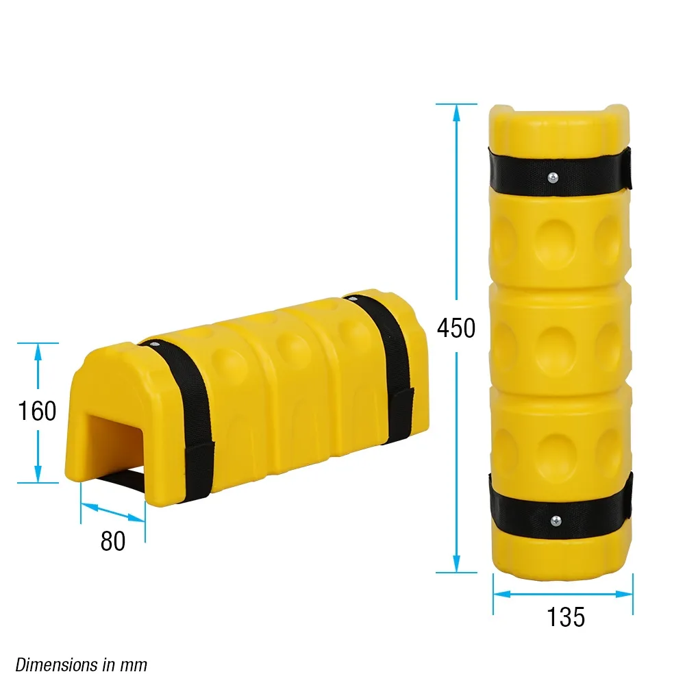 A column cushion, like warehouse racking protector, is designed for pillars or racking up to 80mm wide. No tools are needed for attachment, with both Velcro straps and self-adhesive strips used for installation. The (2) included self-adhesive strips are able to stick on most surface types, just make sure debris is removed prior to installation for proper adhesion. The Velcro straps are used to tighten the bumper and keep it properly secured. The pillar protection is bright yellow in appearance to be easily visible and seen from a distance to warn of an impediment to help prevent impact from occuring.