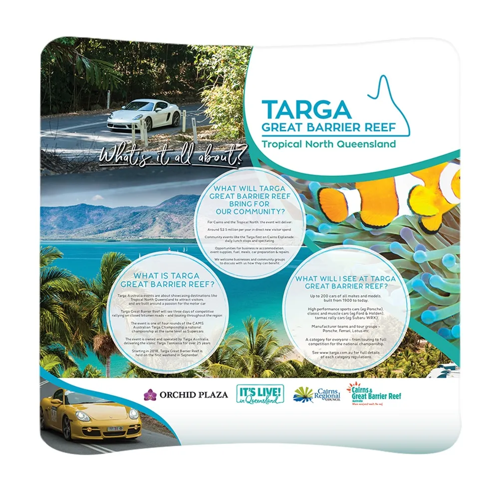 Update your graphics for your next event with this replacement printed fabric for SLWAVE24, SLWAVE24LED, & SLWAVE24KIT! By changing up your imagery, you can ensure to better target the clientele as specific events and get them more interested in your business, goods, and services. The 2.2 x 2.1m fabric is digitally printed on using a dye-sublimation process, providing full colour depictions of your designs with rich imagery and colours that really help to draw the attention of passersby to garner their interest. Our in-house team is available to assist with your designs as well, offering three different tiers to choose from to allow you to create the graphics that you need. The fabric itself is made from machine washable polyester that is also fire retardant for safety. Zippers are used to secure the fabric around the frame tightly and offer a seamless look. Slimline Warehouse provides fast shipping to anywhere in Australia, buy online today for quick dispatch for use at your next event!